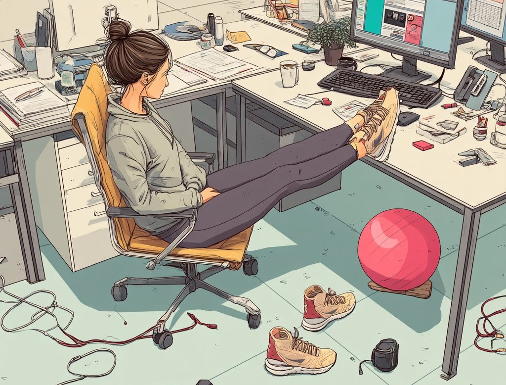 Вместо обычных офисных столов можно поставить регулируемые по высоте. Они позволяют работать как сидя, так и стоя. Сотрудники с сидячей работой оценят такую возможность. Кроме этого, полезно создать в офисе уголок для спорта — с обручем, скакалкой, парой гантель, фитнес-мячом. Затрат минимум и много места это не займёт, а польза неоценима.
