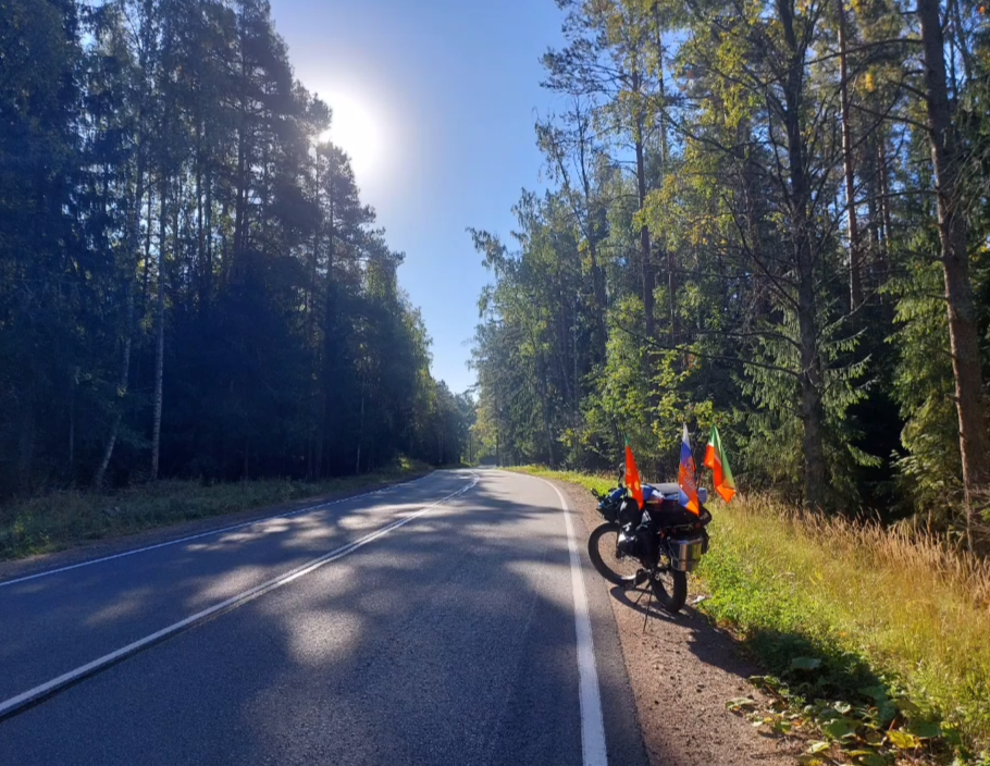 — В Архангельске у друзей четыре для был, в Северодвинске искупался в Белом море, в Питере у друзей неделю [провёл], ходили по музеям. Там 46-й День рождения свой отметил 18 сентября. В Пскове в музей приехал сфотографироваться с очень легендарным велосипедом. На нём первый наш русский велопутешественник Глеб Леонтьевич Травин с 1928 по 1931 годы проехал вдоль всей границы СССР, а это 85 тысяч километров. Даже книга есть о нём — «Человек с железным оленем», но велосипед почему-то в запасники убрали. Побывал на могиле Александра Сергеевича Пушкина. После собирался в Курск, но там были события, из-за которых маршрут немножко поменялся, поэтому я поехал на Воронеж, а оттуда повернул на Белгород, — делится впечатлениями путешественник.