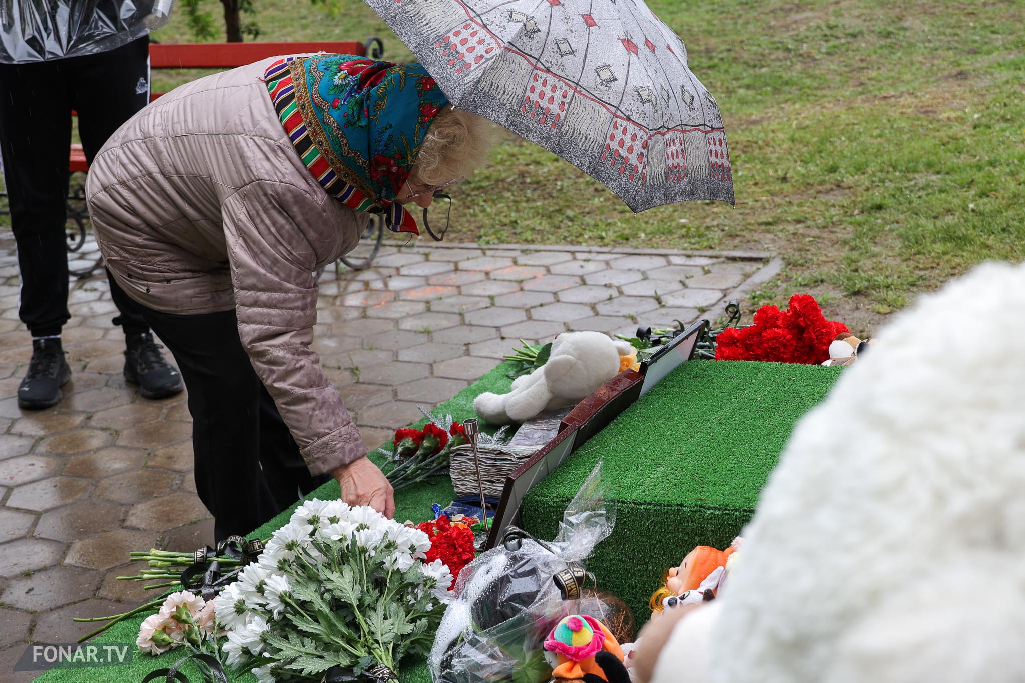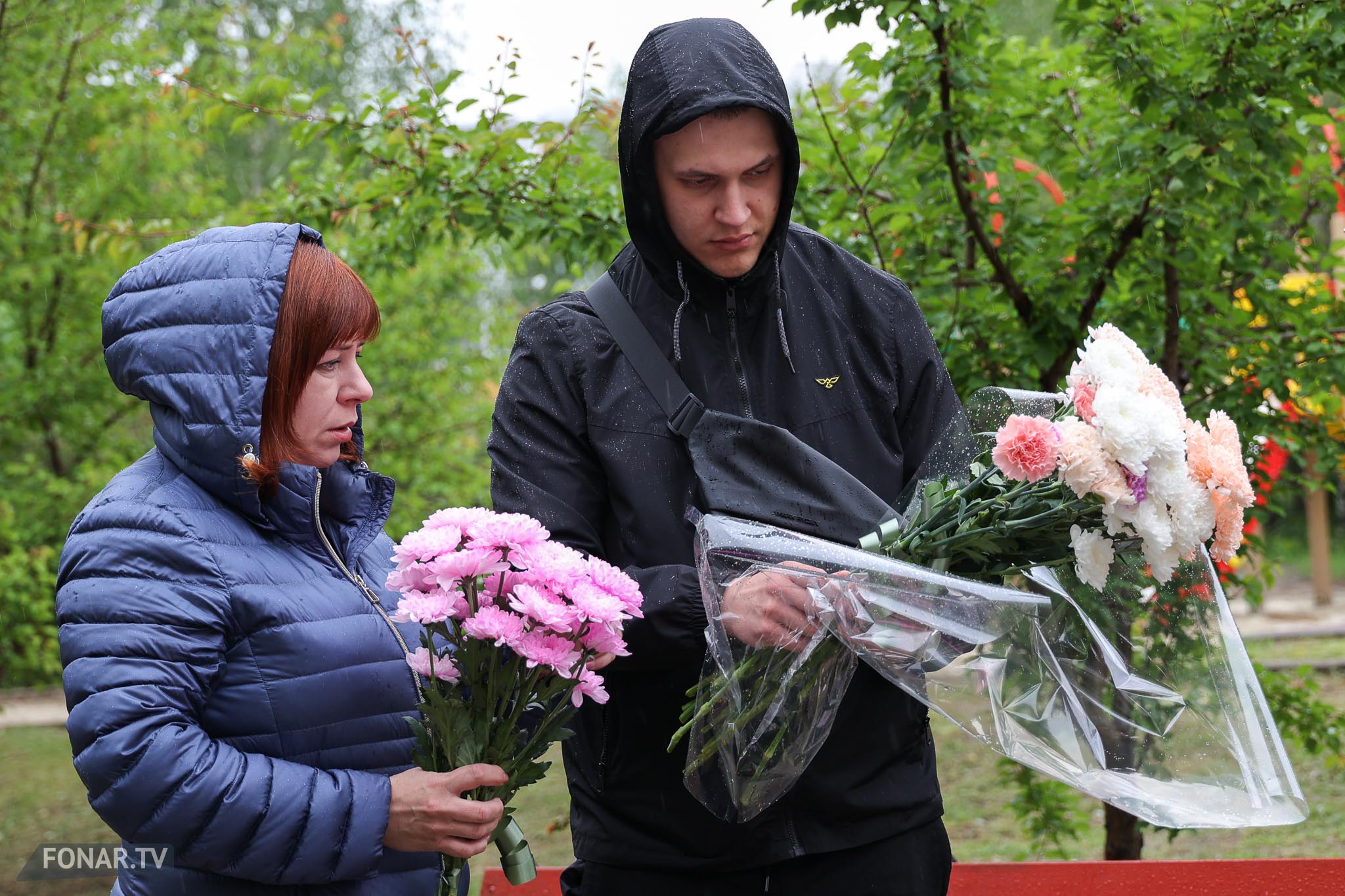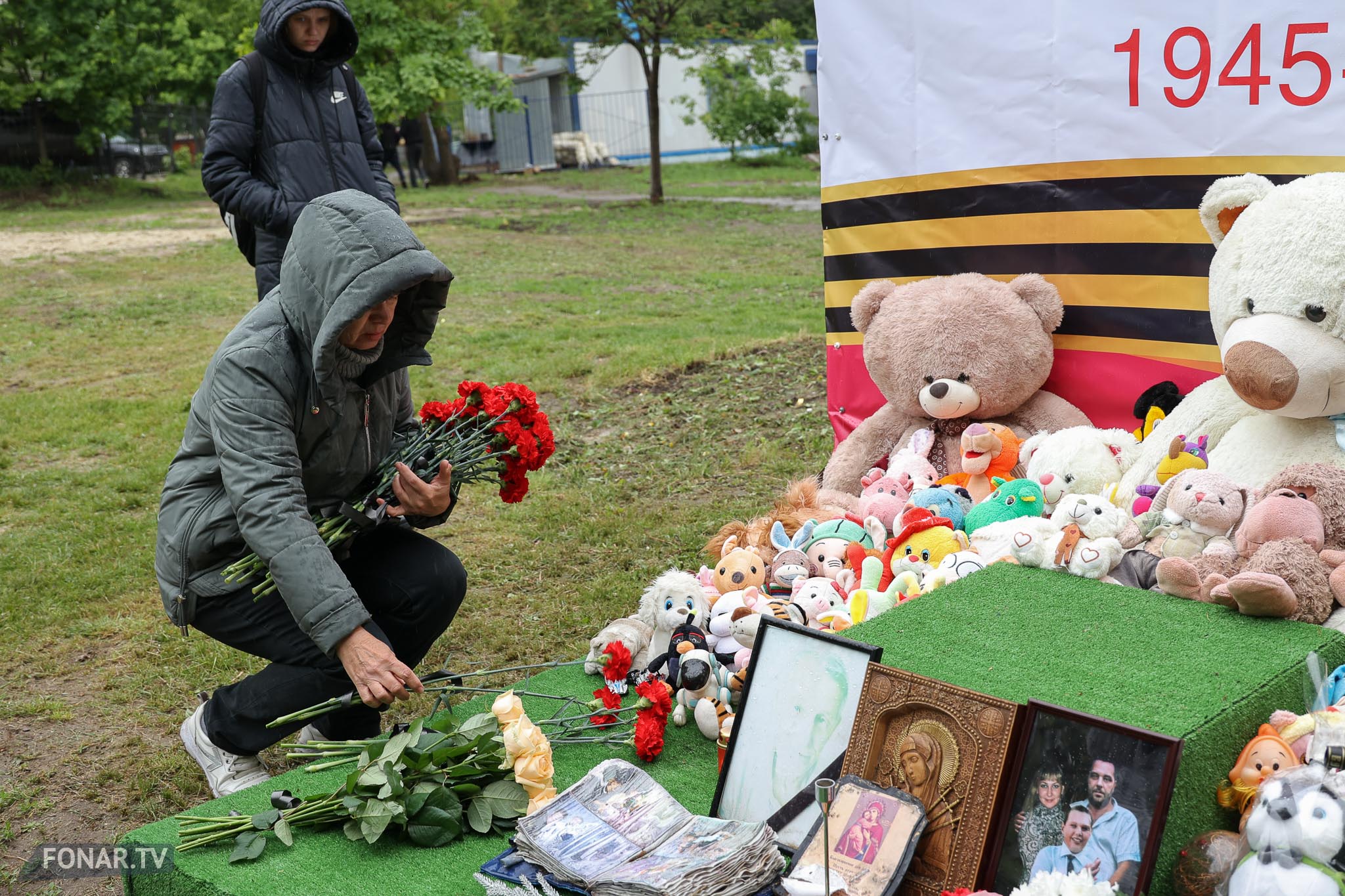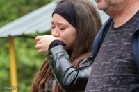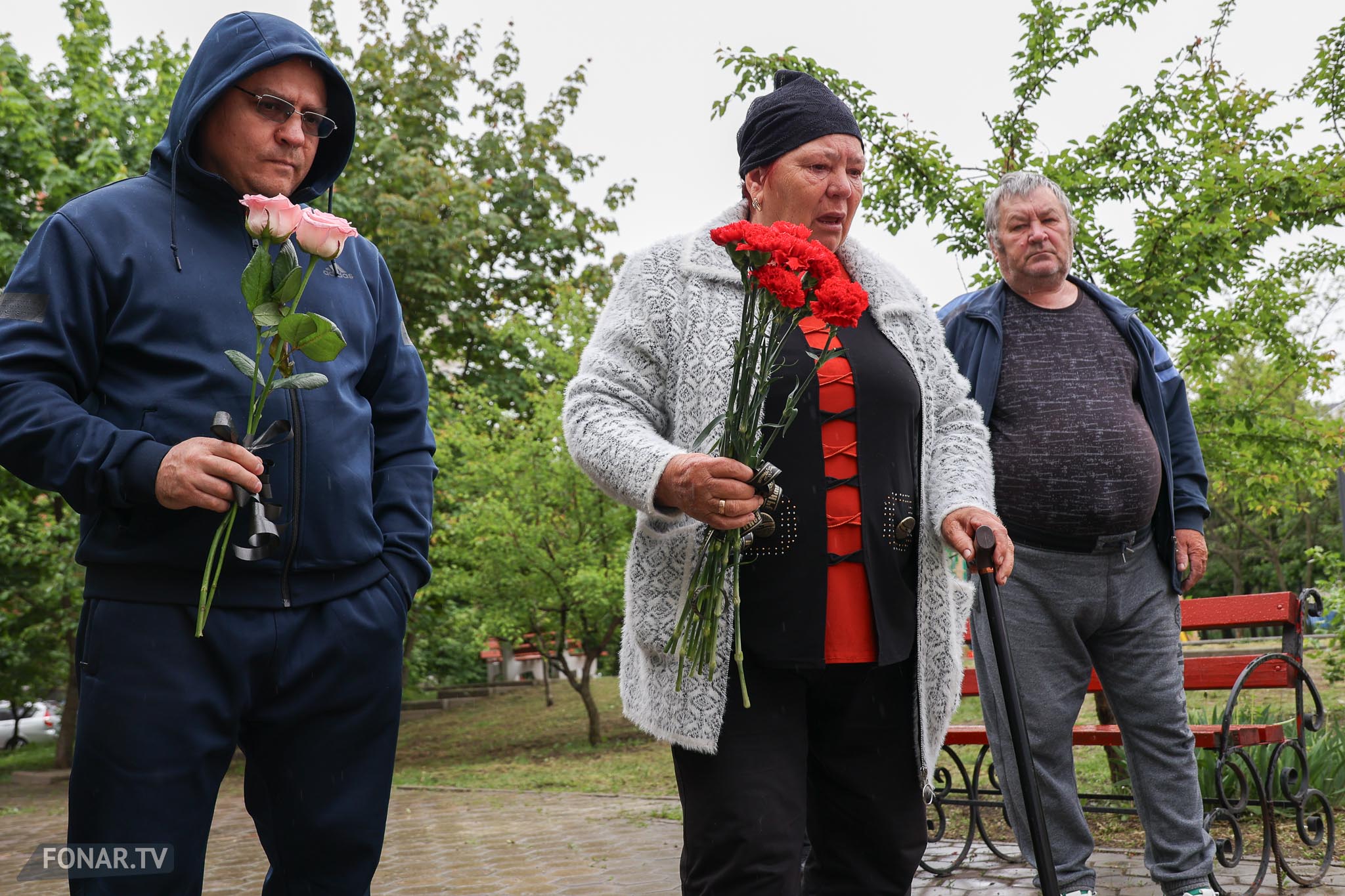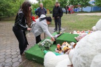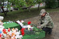 Утром 12 мая к мемориалу, несмотря на дождь, подошла девушка с родственниками. Екатерина Проценко приехала из Санкт-Петербурга почтить память старшего брата — 44-летнего Владимира Проценко. Он погиб в доме вместе с женой Мариной и 12-летним сыном Кирюшей, у которого диагностировали расстройство аутистического спектра.