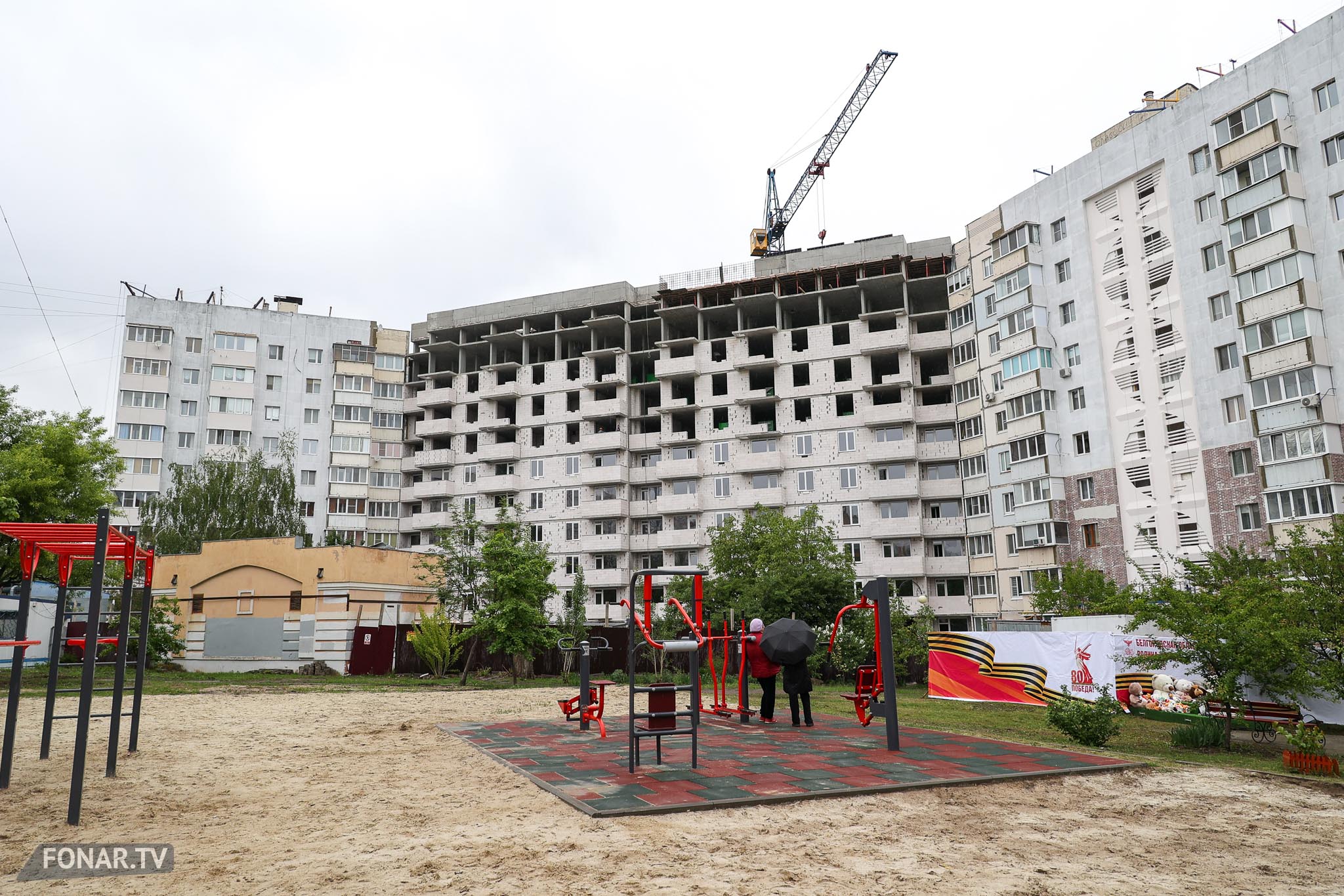 Вечереет. Рабочий день белгородцев давно закончился, но строители не уходят с площадки.