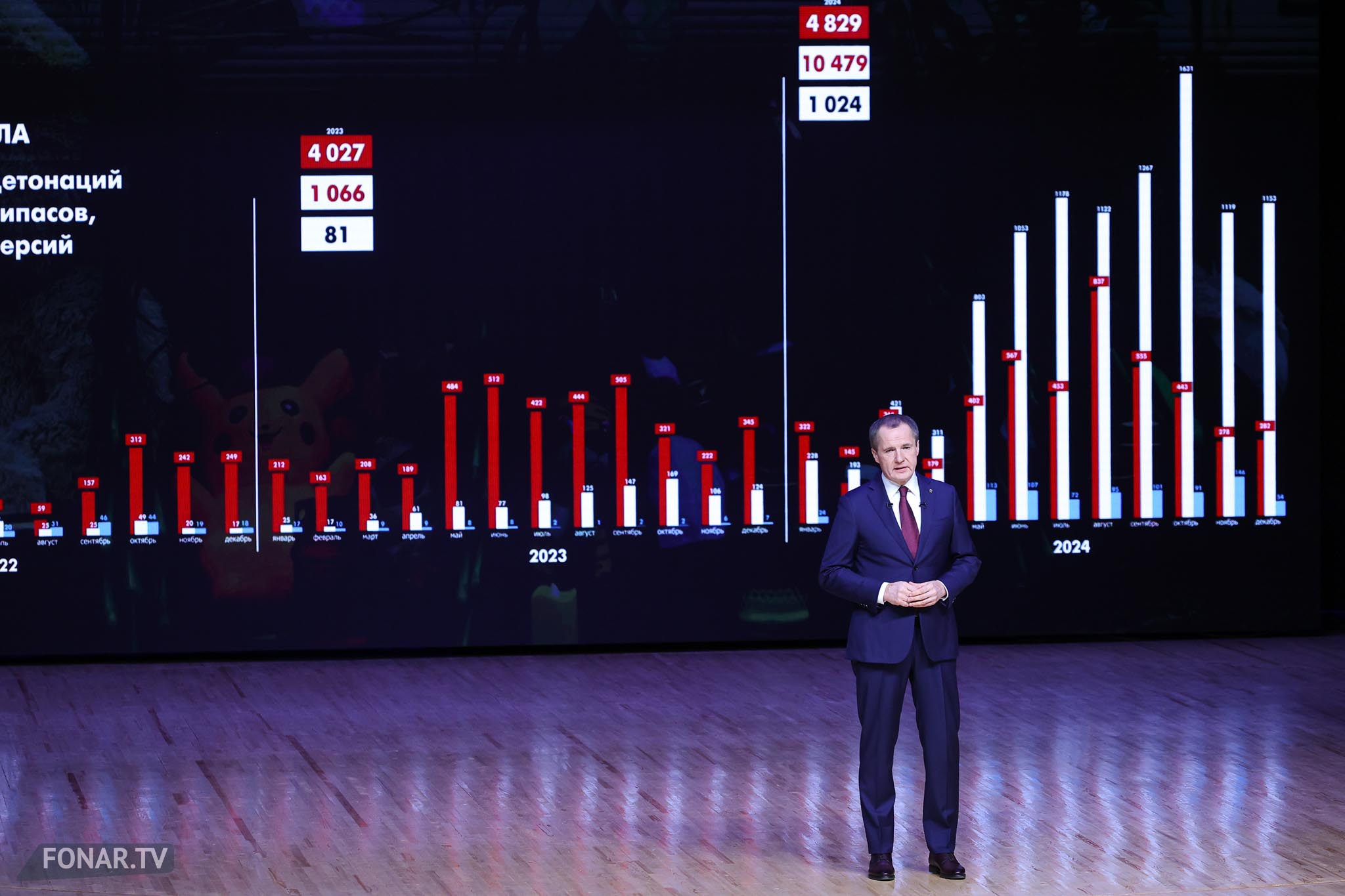 С начала 2024 года Белгородская область подверглась более чем 5 тысячам артобстрелов, а дроны атаковали территорию свыше 10 тысяч раз. Были разрушены или повреждены 28 тысяч домов и квартир, особенно пострадал Белгород. «Самое страшное — у нас погибли дети», — подчеркнул губернатор.
