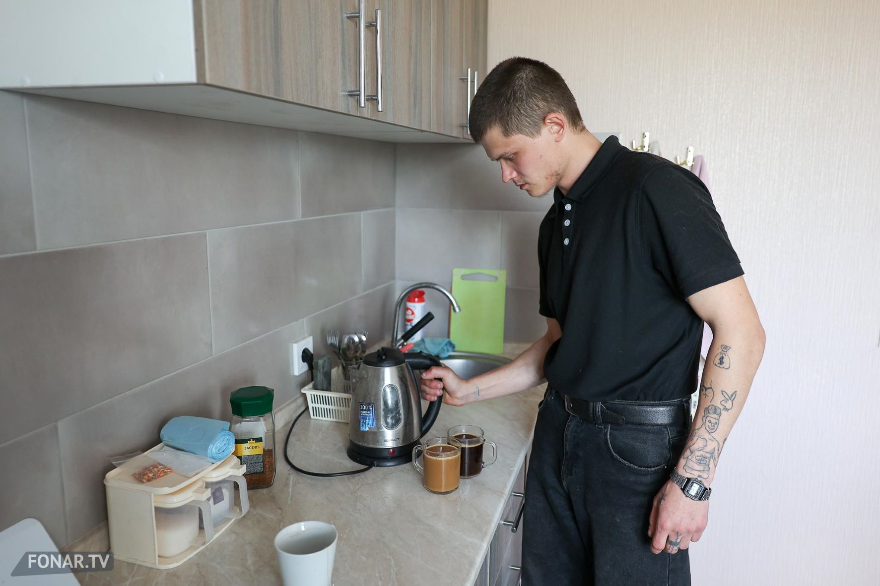 — Первые дни как-то было непривычно, трудно одному. Потом привык. Сейчас уже нормально, собака есть, готовить умею, работаю, — отвечает он о том, какими были его первые полгода самостоятельной жизни. — Когда живёшь сам, уже понимаешь, что тебе нужно. Вот ковра у меня не было, я его купил, а в остальном меня всё устраивает, всё прекрасно, всё отлично.