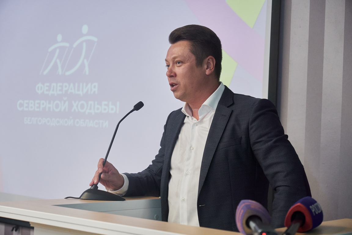 В пресс-центре отеля «Континенталь» прошла ежегодная пресс-конференция Белгородской федерации северной ходьбы. Среди участников — депутаты, спортсмены, тренеры и руководители клубов. Первым к собравшимся обратился помощник депутата Госдумы Никиты Румянцева Евгений Попов, а следом выступил и сам Никита Геннадьевич — основатель белгородской федерации.
