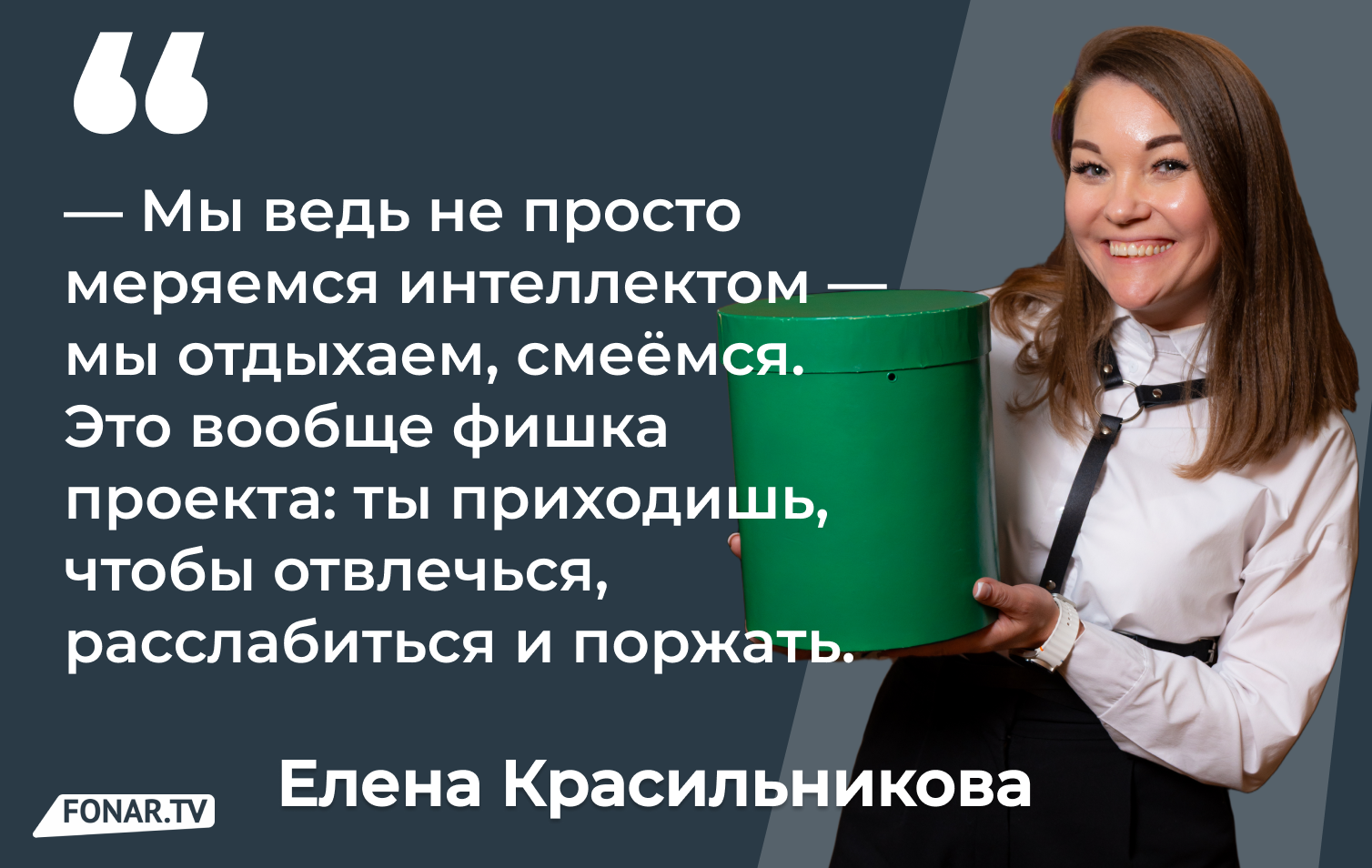 — Однажды, чуть больше пяти лет назад, Лена поделилась со мной идеей: привезти в наш город новый КВИЗ. На тот момент в Белгороде было достаточное количество интеллектуальных игр, и я скептически отнёсся к ее идее, сказав только, что этого добра у нас уже хватает. На что Лена улыбнулась и ответила: «Такого, точно нет! Я это сделаю!».
