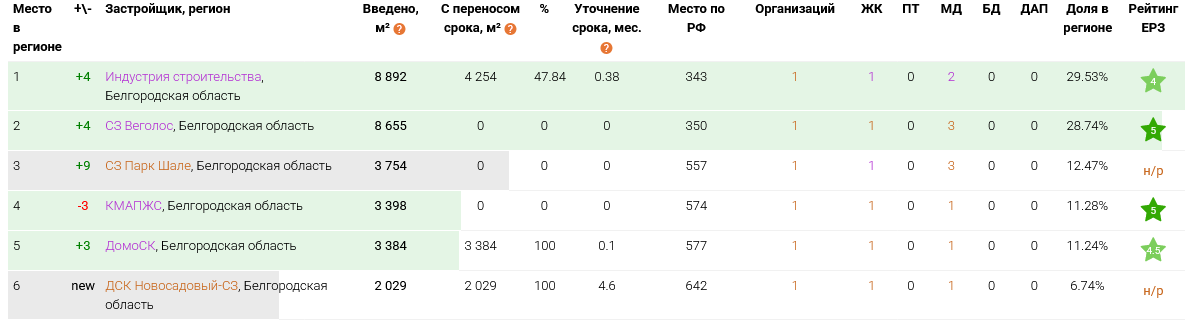 А что с теми, кто вводит в эксплуатацию больше всех жилья?