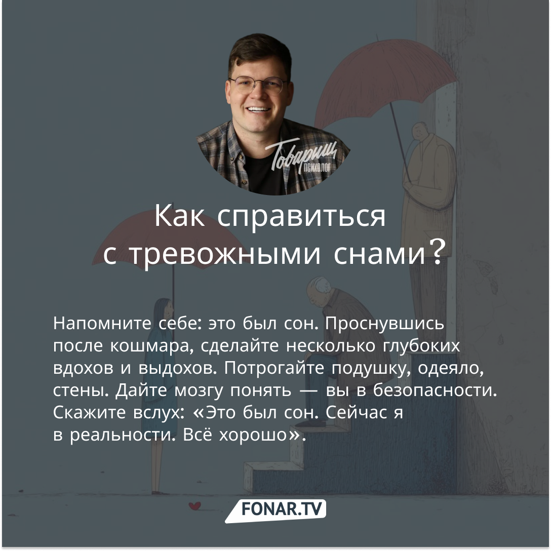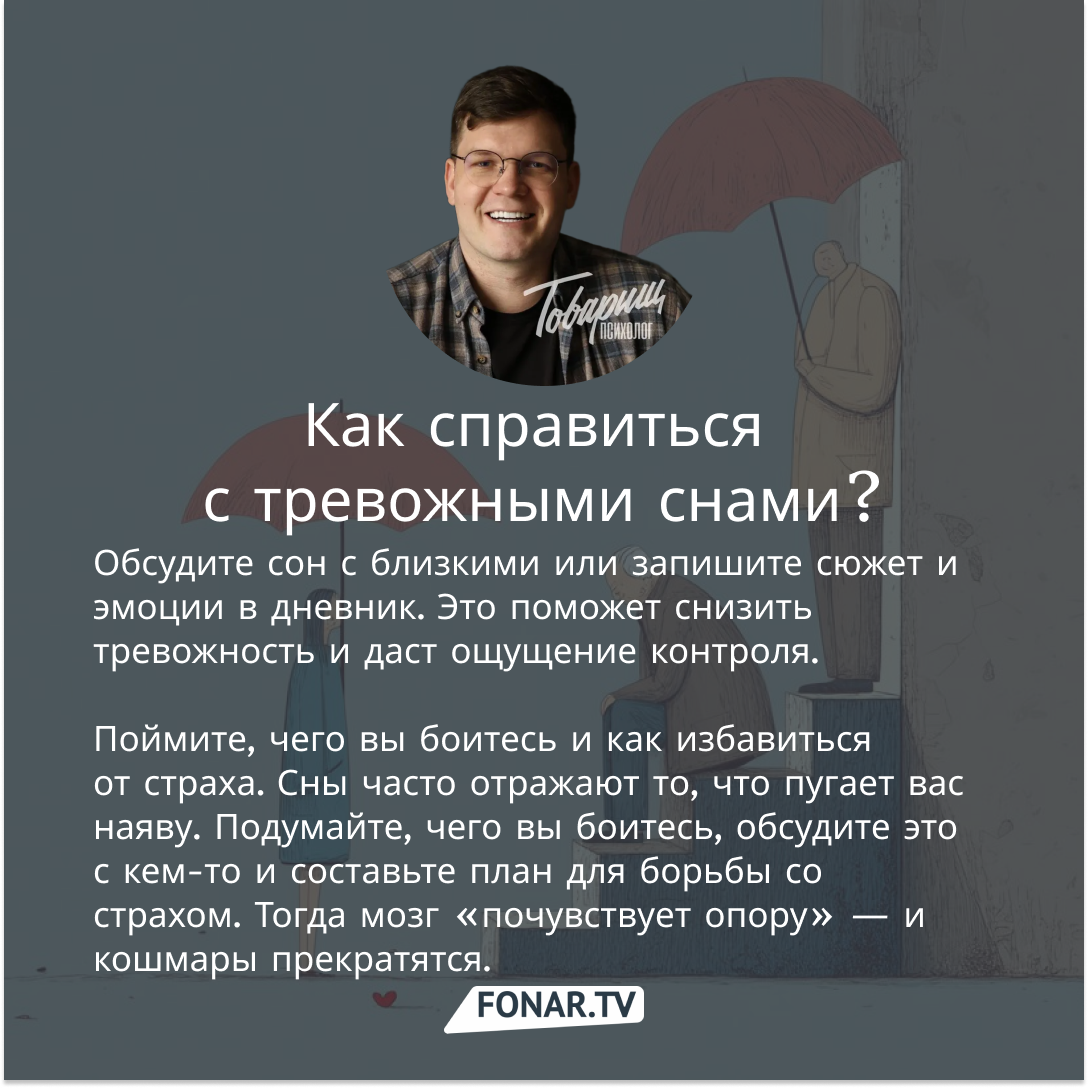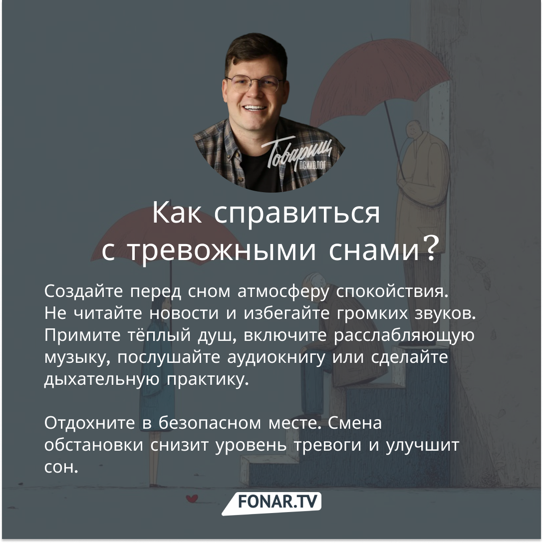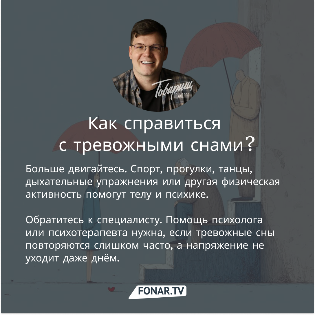 — Психика в таких снах проживает травму. Она до конца не верит, что опасность миновала, и будто говорит: «Мне страшно, я всё ещё под огнём». Иногда этот страх буквально парализует: люди во снах не могут ни убежать, ни защитить близких, — говорит психолог Максим Страхов.