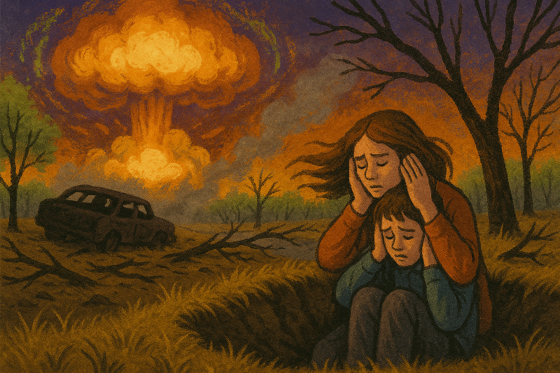 Сон Александры про ядерный взрыв. Читать↓Девушка запомнила самый страшный из снов. Она ехала в машине со своим 18-летним братом Димой. У него аутизм. Вдоль дороги зеленела трава, на деревьях распускались почки — наступила весна. Вдруг вдалеке девушка увидела ядерный гриб. Александра с братом выскочила из машины и прыгнула в глубокую канаву. Девушка закрыла уши себе и Диме. Над ними пронеслась взрывная волна и сильный грохот. После взрыва сестра и брат выбрались из канавы. Машина лежала перевёрнутая и обугленная. Вокруг было тихо. Они увидели сожжённую землю с пожелтевшей травой, повсюду валялись деревья. Пахло гарью и сладостью. Небо стало оранжево-фиолетовым. Девушке казалось, что её родственники не успели спрятаться и погибли. Она размышляла, как добраться домой и найти бутылочку йода, который нужно выпить при поражении радиацией. — Рядом со мной стоял Дима. Он спрашивал меня: «Что случилось? Что случилось?». Я ему сказала: «Не бойся, всё хорошо». Раз мы с Димой остались живы, я не могу ещё потерять брата. Нам срочно нужен йод! — вспоминает Александра свой сон. |
