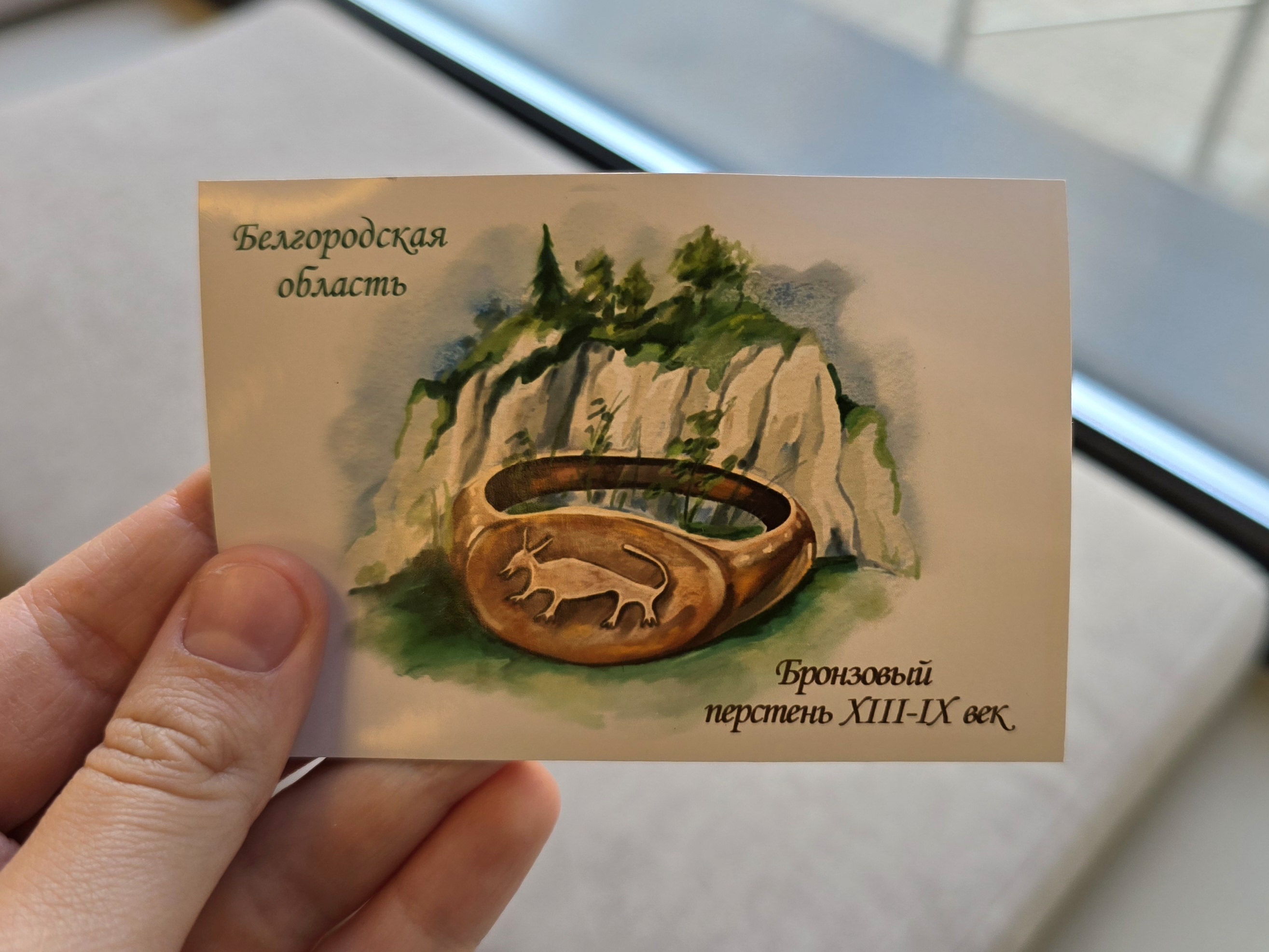 В качестве приза за решённые загадки я получила магнит с изображением белгородской археологической находки — бронзового перстня.