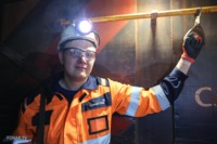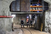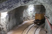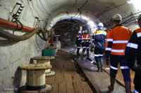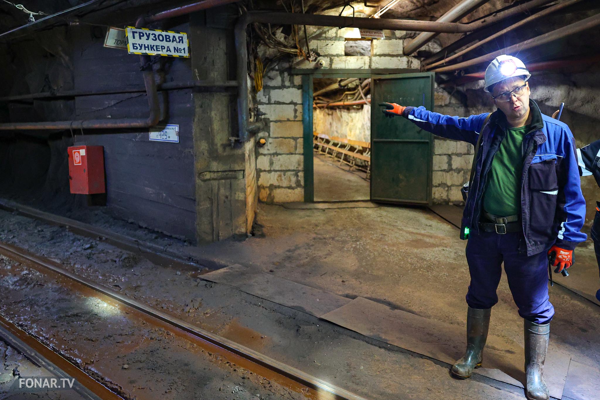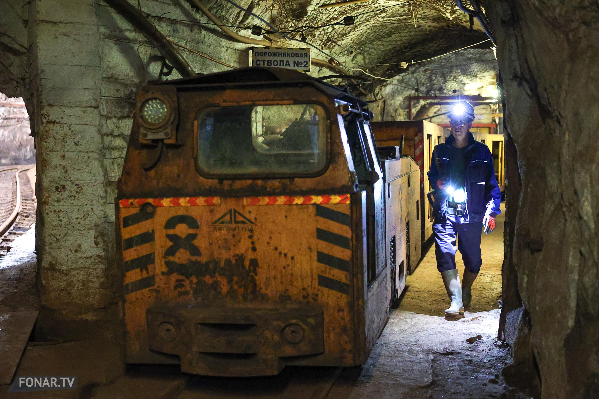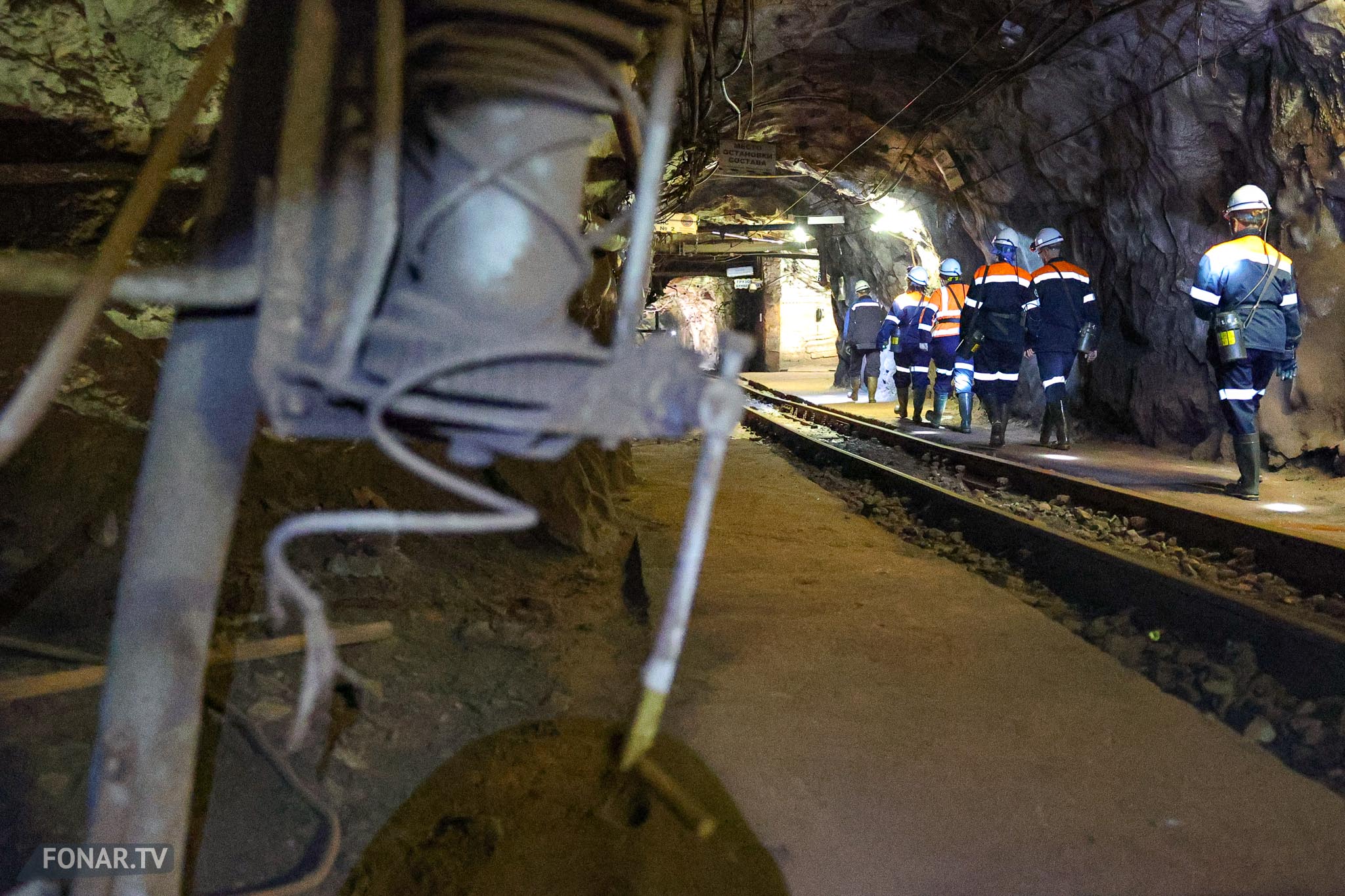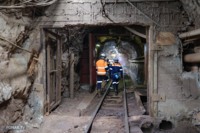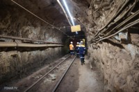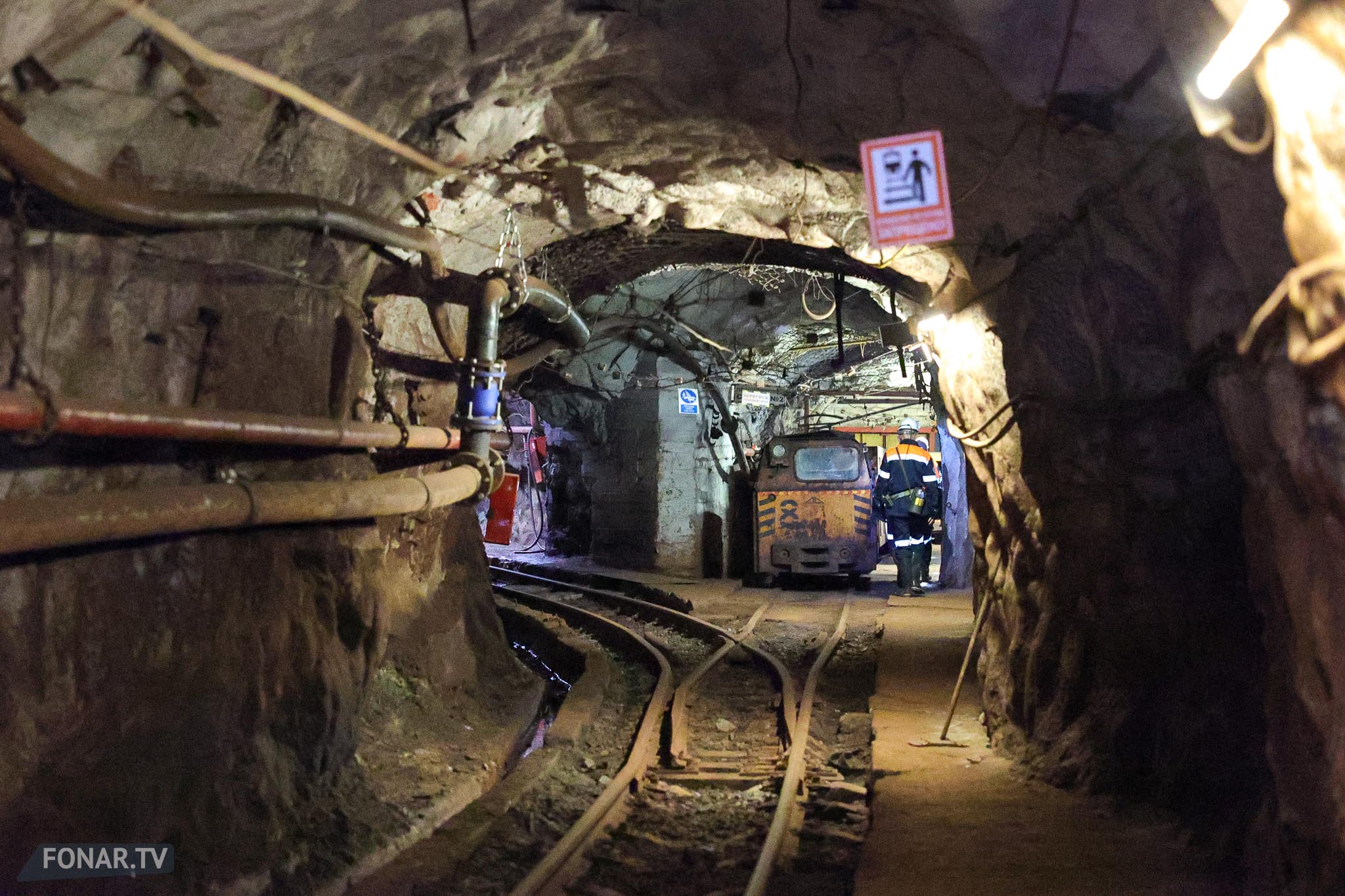 Рельсы проложены для подземной электрички, на которой шахтёры добираются до места выработки, и вагонов, которые перевозят материалы, необходимые в шахте.