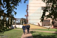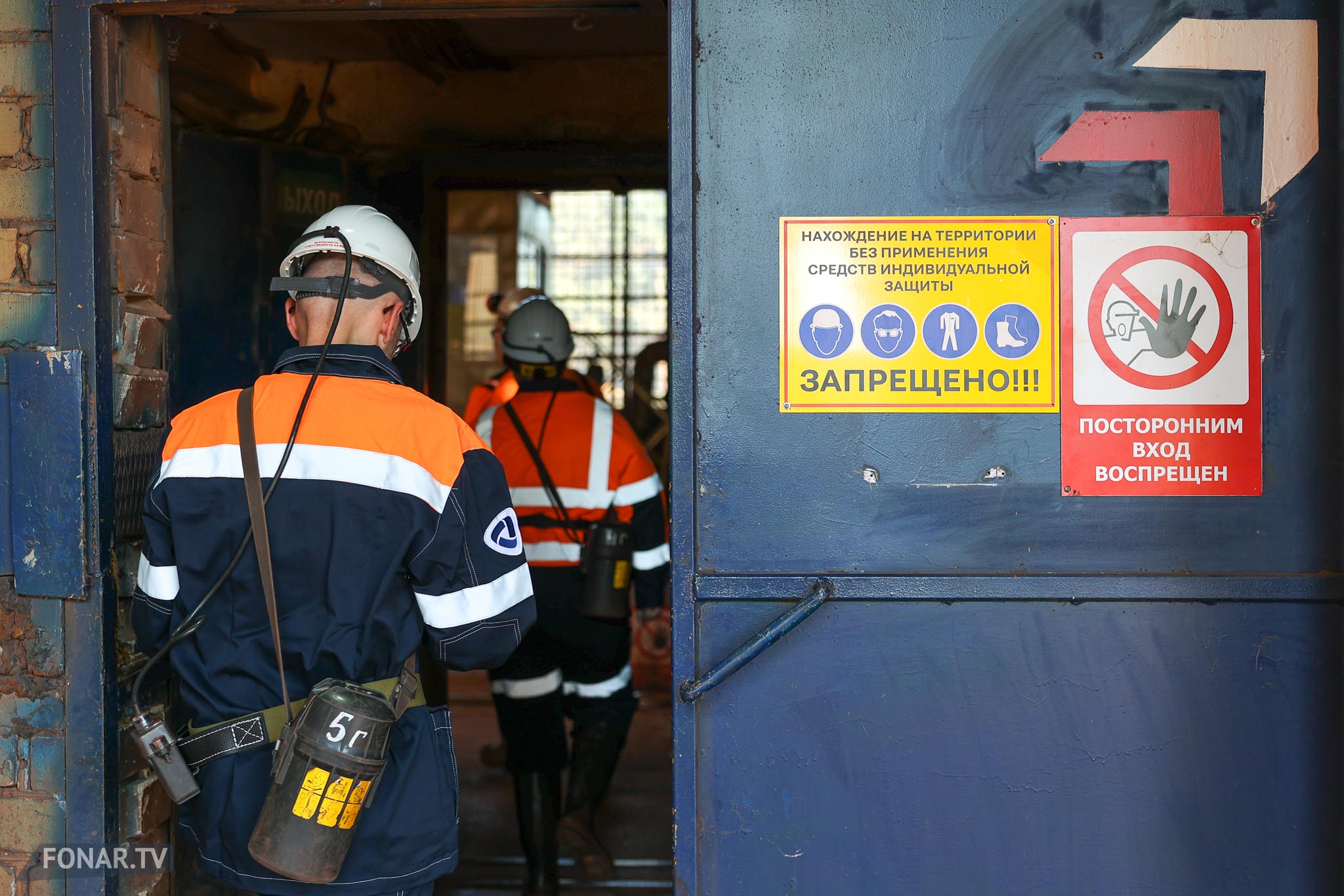 Подготовка, по ощущениям, — как к выходу в открытый космос. Сначала прошли два инструктажа по технике безопасности, затем переоделись в спецодежду. Всем гостям выдали каску, а женщинам ещё и косынки, очки, футболку, комбинезон, куртку, ремень, перчатки, сапоги. А ещё две пары носков, обычные и шерстяные — если остаться в своих, есть риск промочить ноги. Важно, чтобы спецодежда была по размеру, особенно — сапоги. Если они будут велики или малы, то будет некомфортно, также есть риск поскользнуться и упасть. А безопасность на Яковлевском руднике — на первом месте, тут даже по лестнице ходить нужно только держась за перила, о чём предупреждают соответствующие надписи.
