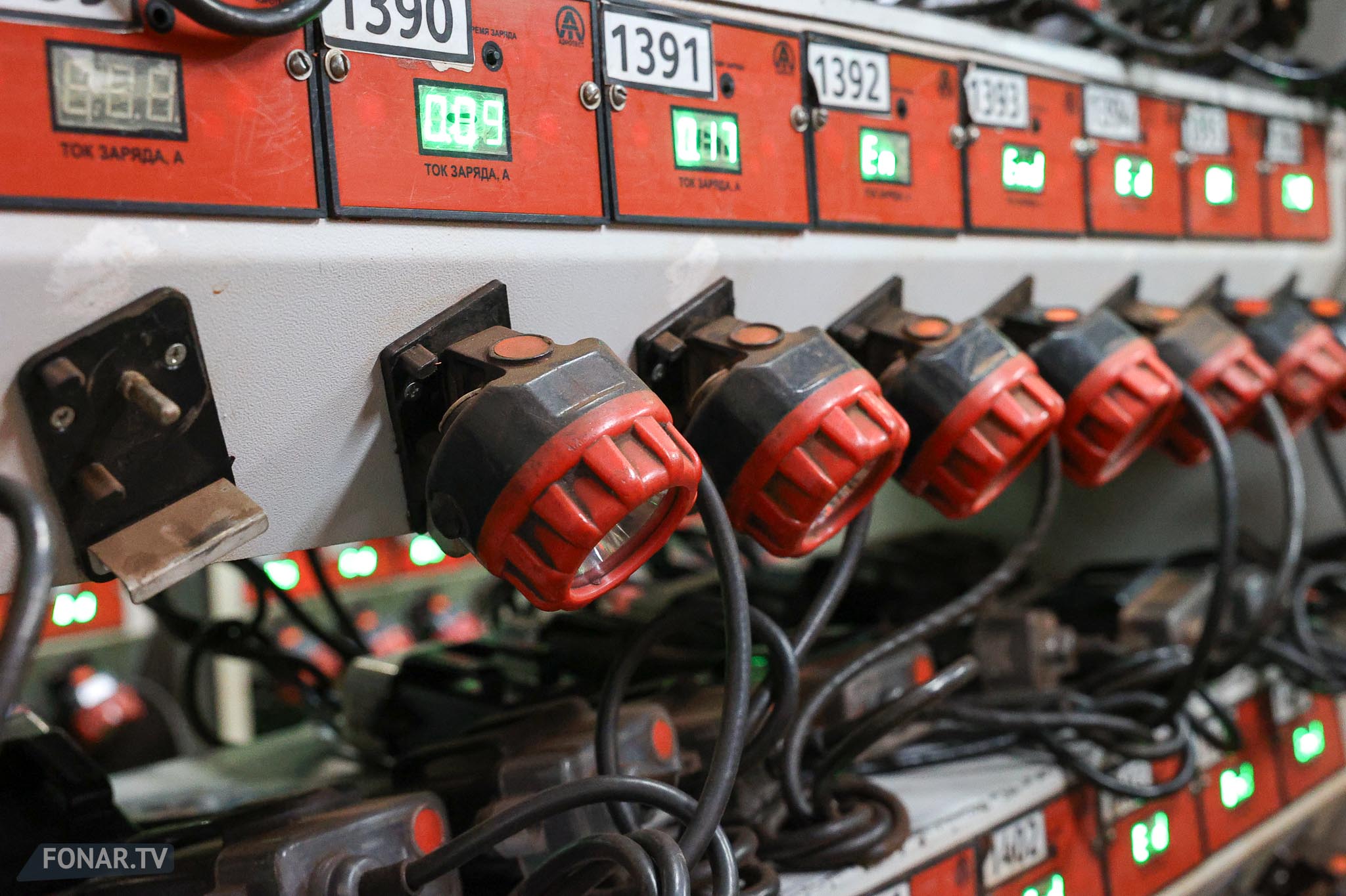 Налобный фонарик (лампу) и самоспасатель — прибор, который обеспечивает доступ к кислороду в экстренной ситуации — выдали отдельно, в специальном помещении под названием «ламповая».