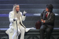 «Отвратительные, тревожные жёлтые» мимозы тоже на сцене были. На фоне чёрного плаща Маргариты они смотрелись броско.
