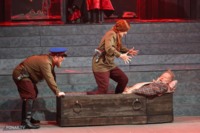 У меня, как у зрителя, есть небольшая странность. Я всегда считаю количество актёров в спектакле. Это хорошо видно на поклоне — 30 актёров. Я могу ошибаться, но эта постановка одна из самых массовых. Практически вся труппа была на сцене.