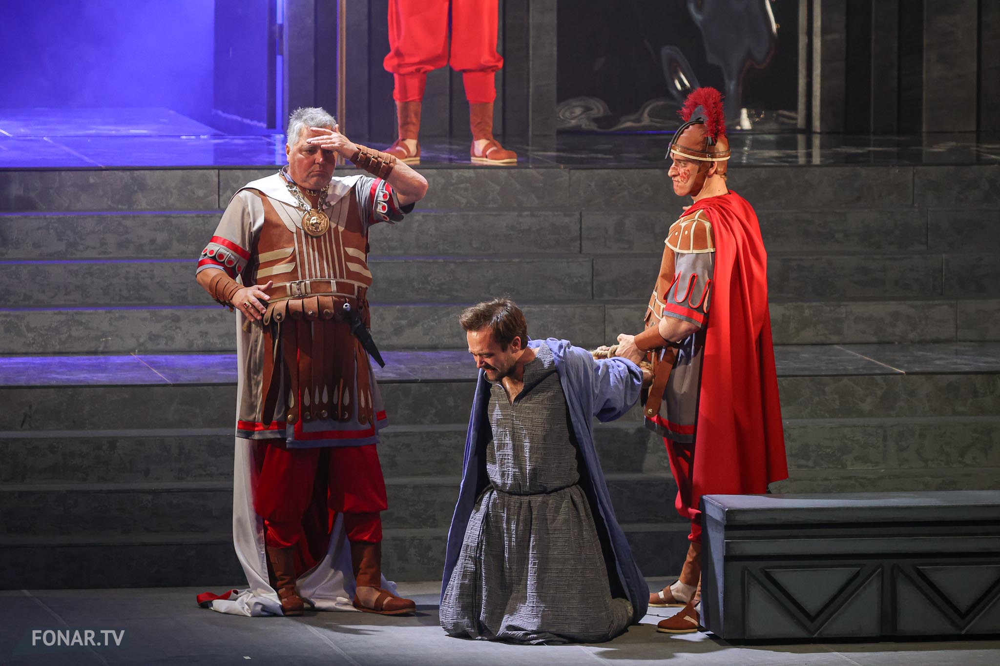 Литовский театр имени Вильнюсского малого (режиссёр Эймунтас Някрошюс) — минималистичная, философская постановка, где внимание сосредоточено на вечных темах: свободе, любви, предательстве.