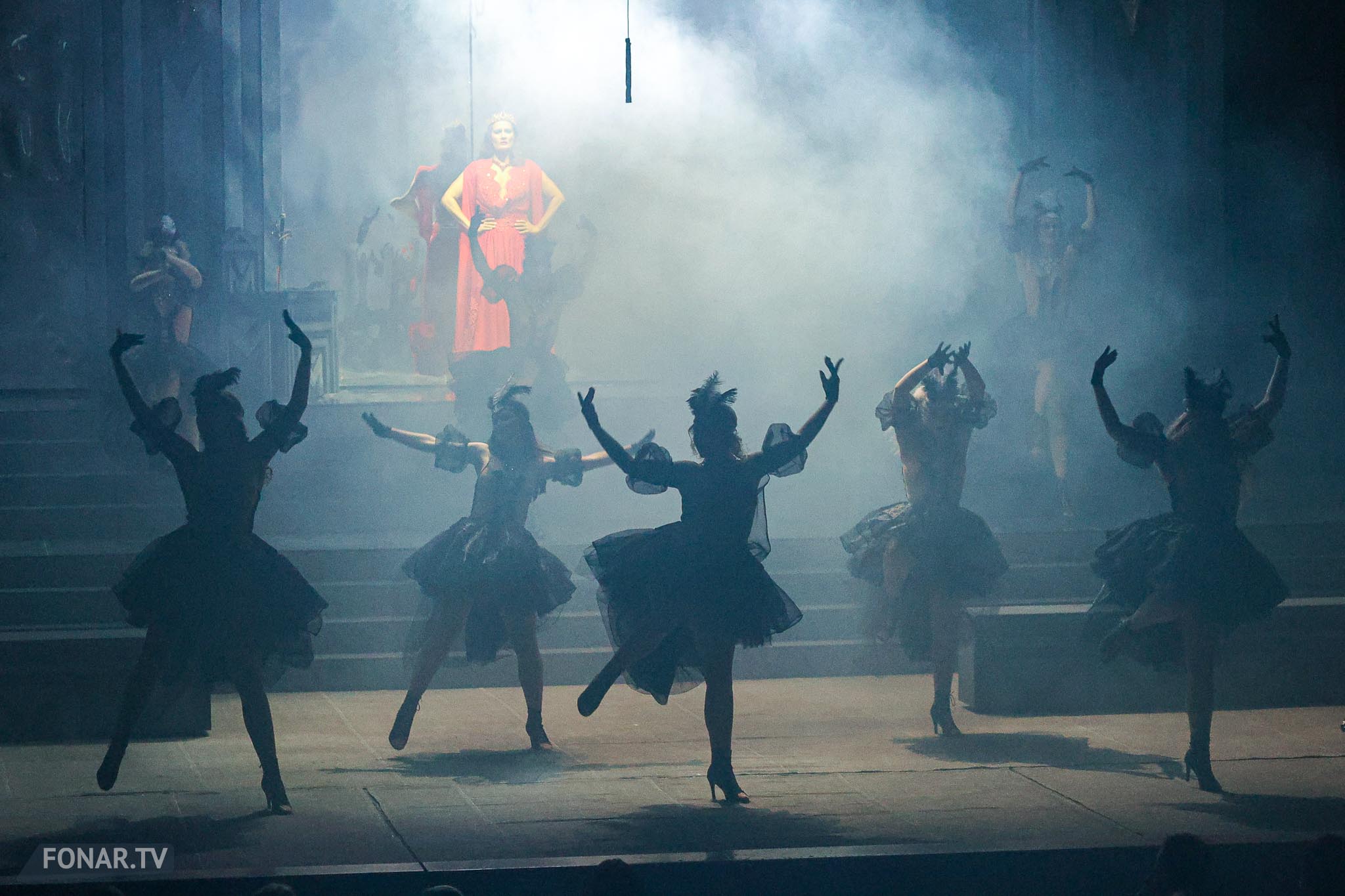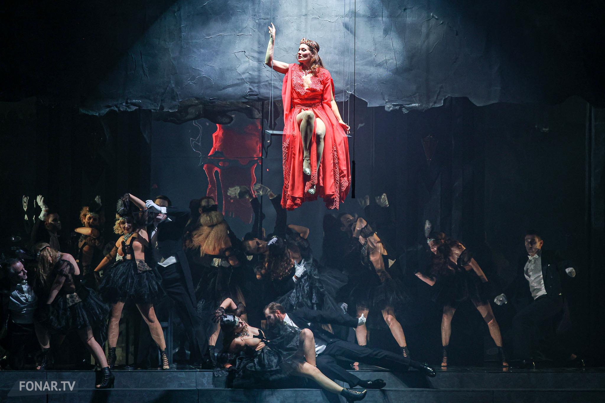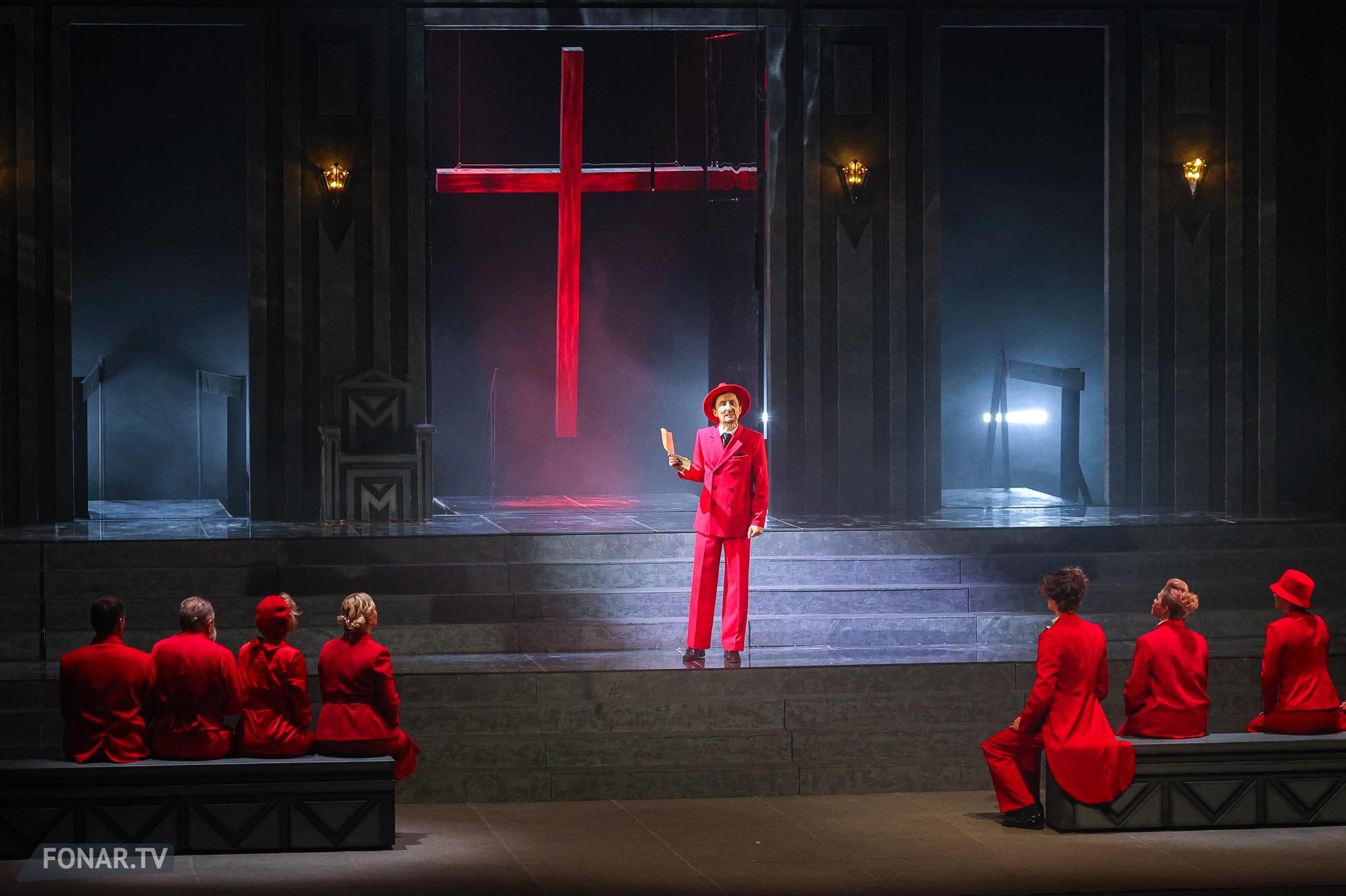 Когда все прожектора направлены на влюблённых, кажется, что, кроме их чувств, больше ничего и не важно. Когда сцена погружена в красные тона, зритель сосредоточен на входе свиты или сцене в театре Варьете. Света и цвета в постановке достаточно, чтобы погрузиться в те эмоции, на которые направлена режиссёрская идея.
