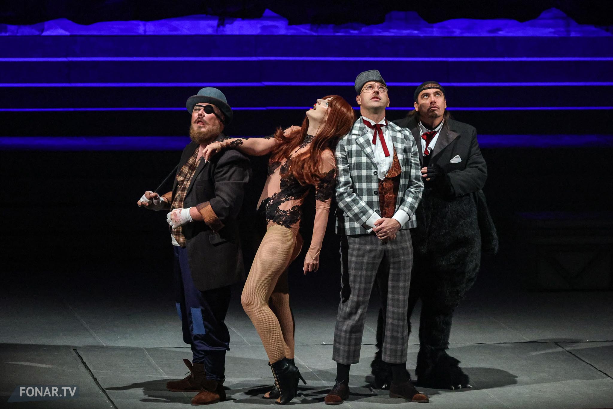 Свита Воланда — это всегда отдельный разговор. Это цельный образ, состоящий из четырёх отдельных составляющих. Эффектное исчезновение, костюмы — все органично вплетено. Ярко и достойно.