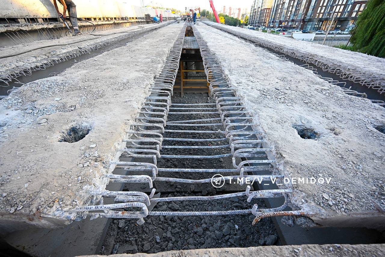 — Левая сторона (от Харгоры к центру): практически всё готово. Завершается монтаж освещения до конца сентября. Движение здесь уже открыто. Правая сторона (от центра к Харгоре): идёт самый сложный этап. Уже демонтировали старое покрытие и балки, почти завершили ливнёвку. Это — фундамент долговечности.