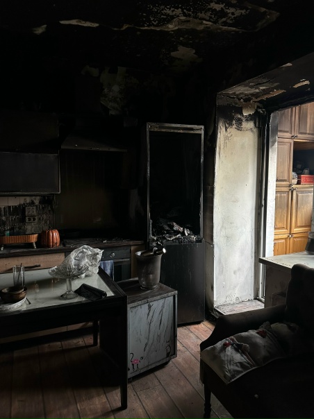 В квартире практически ничего не уцелело. Даже вещи, которые кажутся целыми и их не задел огонь, и те все покрыты гарью. Как-то я взяла из квартиры зарядку из самой дальней комнаты, хотела зарядить телефон, но, когда вставила её в розетку, она просто взорвалась. Я поняла, что придётся избавиться от большей части вещей. Квартира пропиталась гарью, нужен капитальный ремонт. Сейчас идёт сбор средств, часть уже собрали, спасибо всем, кто помог и помогает.