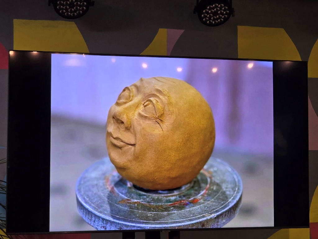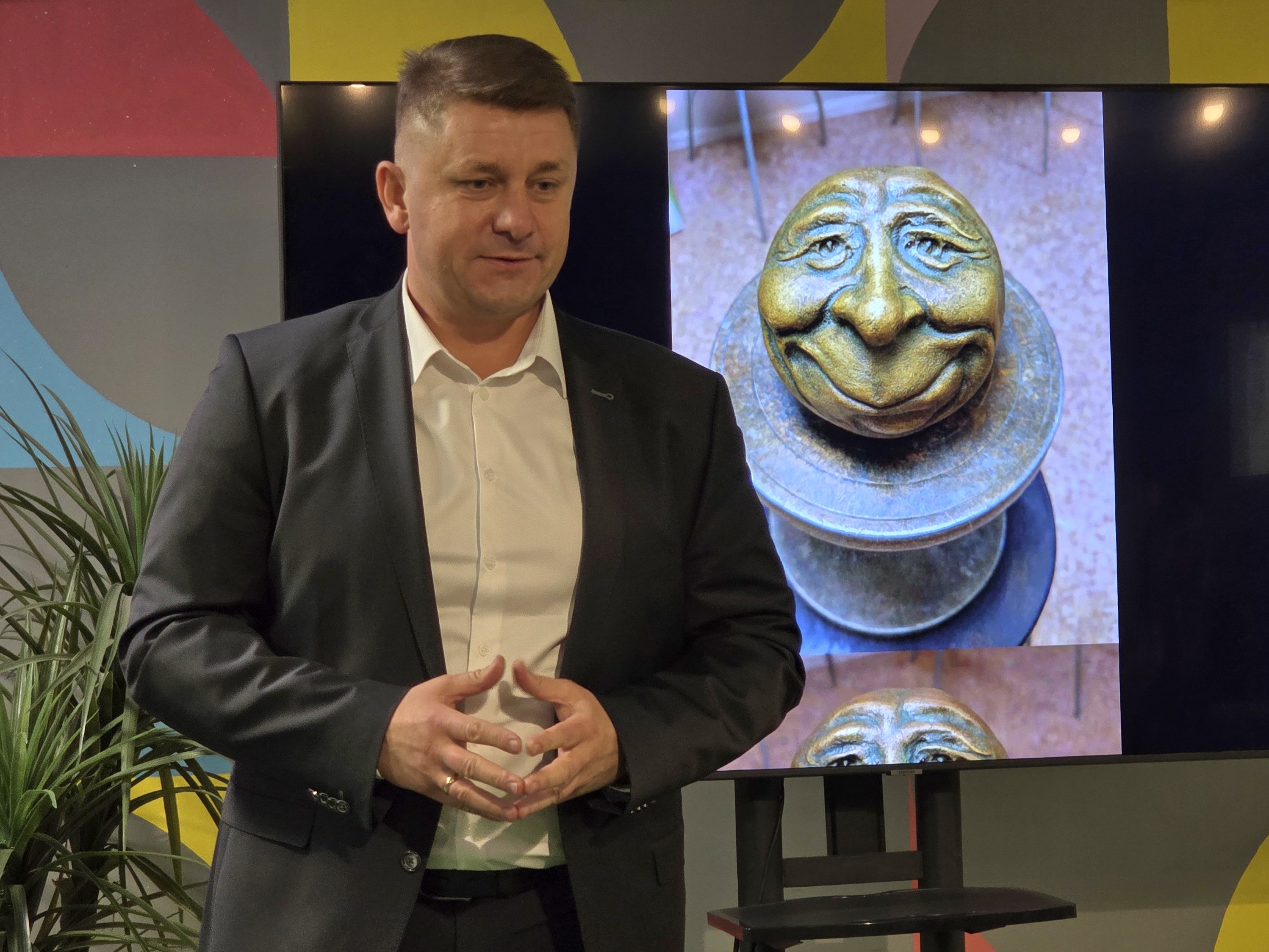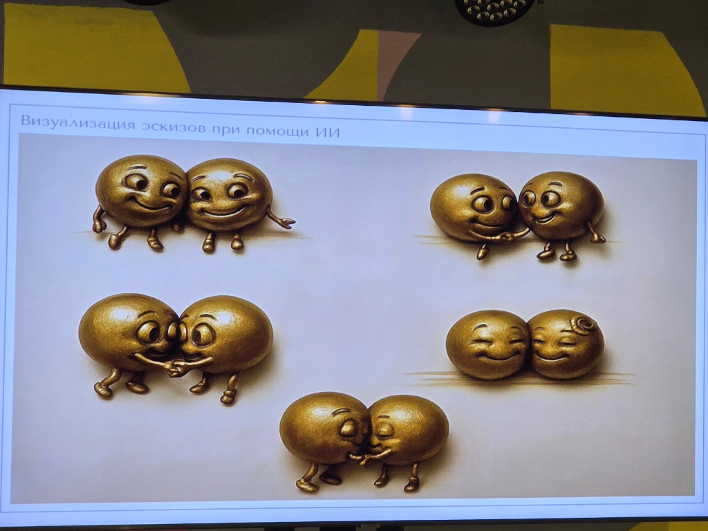 Инна Трощенко показала несколько своих эскизов, объёмную визуализацию которых она сделала с помощью нейросети. Пилотной скульптурой по задумке авторов проекта должна стать пара «влюблённых смайлов», посвящённая Никите Ефимову и его супруге, для которой молодой человек в 2013 году и нарисовал первые смайлы на мосту.