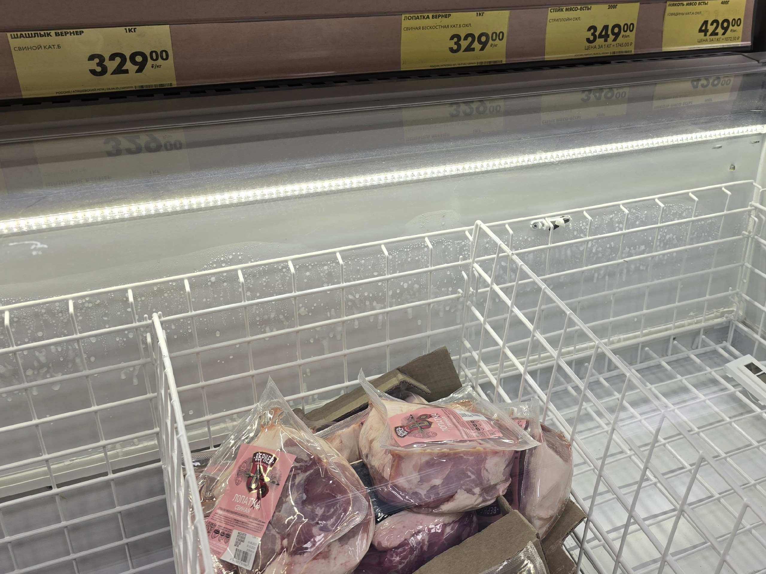- Свинина (лопатка без кости), 329,00 руб./кг — в наличии.