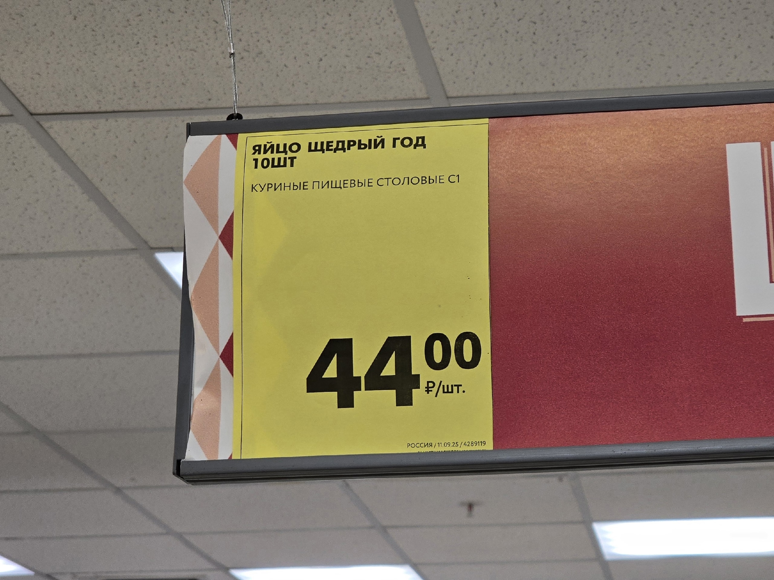- Яйца куриные С1, 49,99 руб./10 шт., ул. 50-летия Белгородской области — стоимость не совпадает, но товар стоит дешевле, чем указано в посте — 44 рубля за 10 штук.