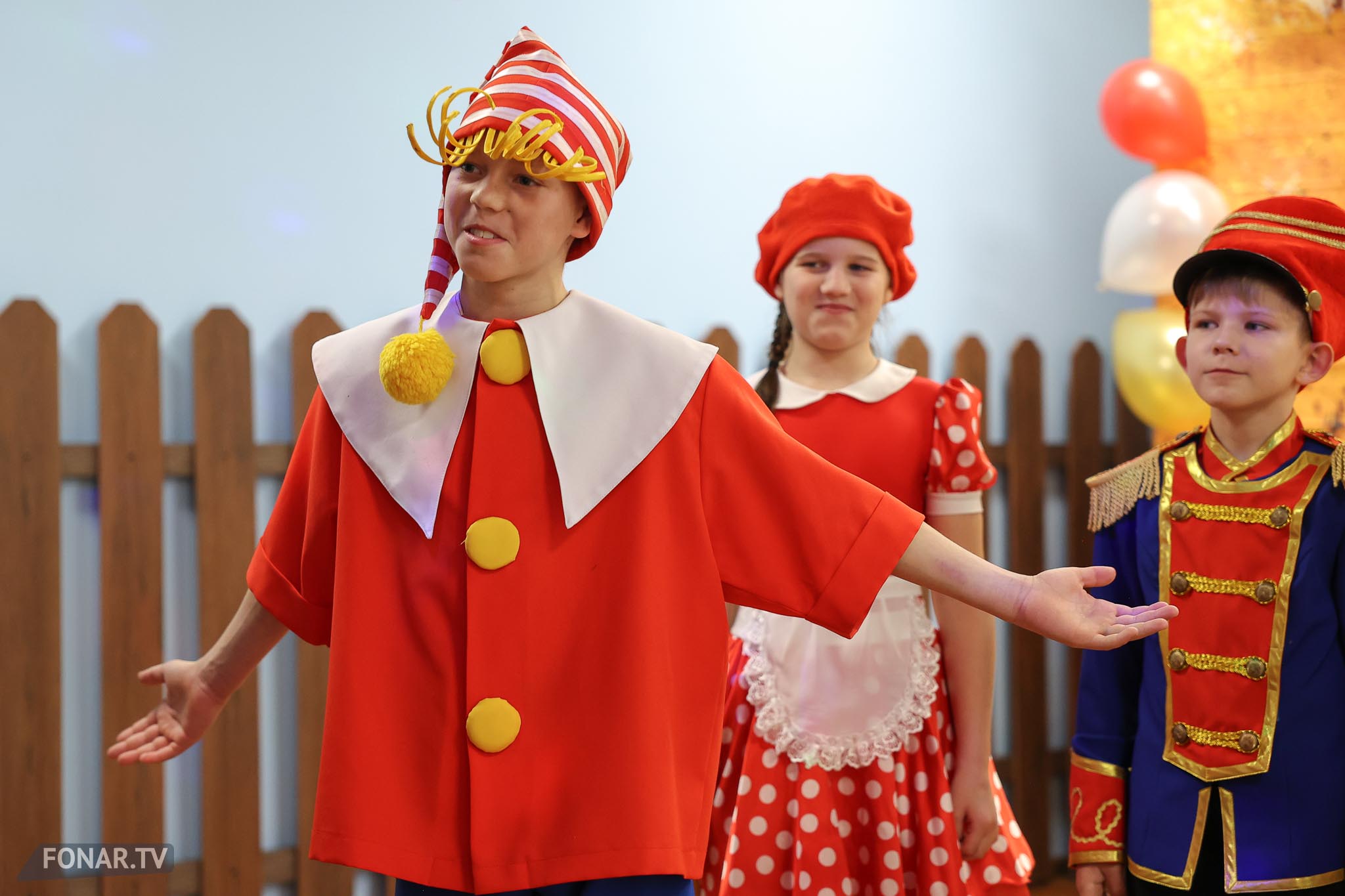 Воспитанники дома детства вместе с наставниками подготовили концерт: был и небольшой спектакль, и музыкальные номера — «Дорога добра» и «Песенка крокодила Гены».