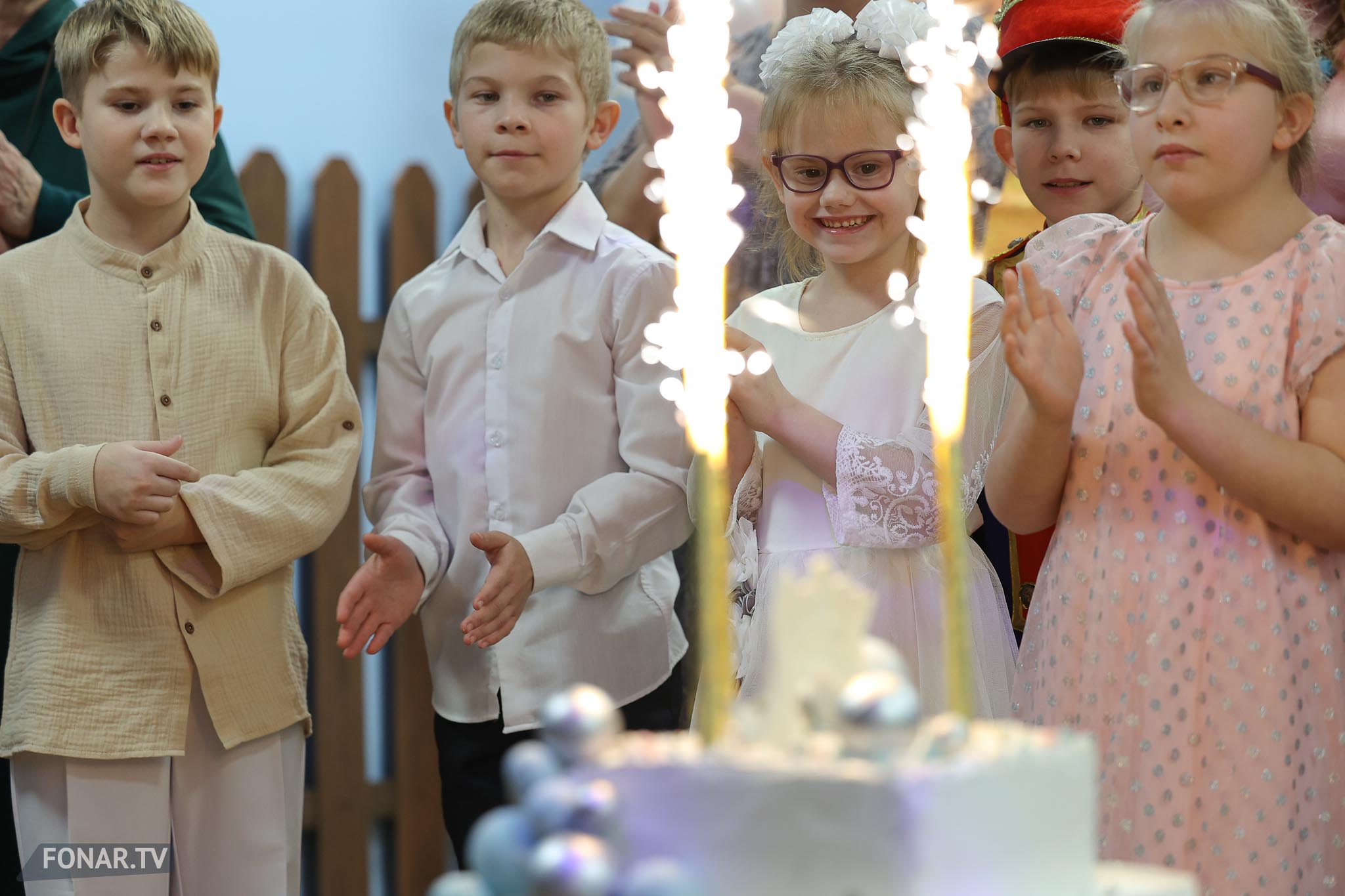 Не обошлось и без подарков. Дому детства подарили велосипеды, ноутбуки, самокат и электрогенератор. В конце праздника, конечно, принесли торт — на котором нарисованы счастливые дети, держащиеся за руки. Пусть так и будет дальше.
