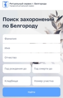 Мы решили проверить проект на функциональность. Сайт доступен. На нём, как следует из ответа, есть база из более чем 96 тысяч захоронений. На сайте для поиска нужно ввести фамилию, имя и отчество, а также дату рождения или смерти человека, названию кладбища и номер участка. Всего на сайте мы обнаружили 93 467 захоронений, при этом все они (без семи могил) находятся на кладбище Ячнево в Белгороде.