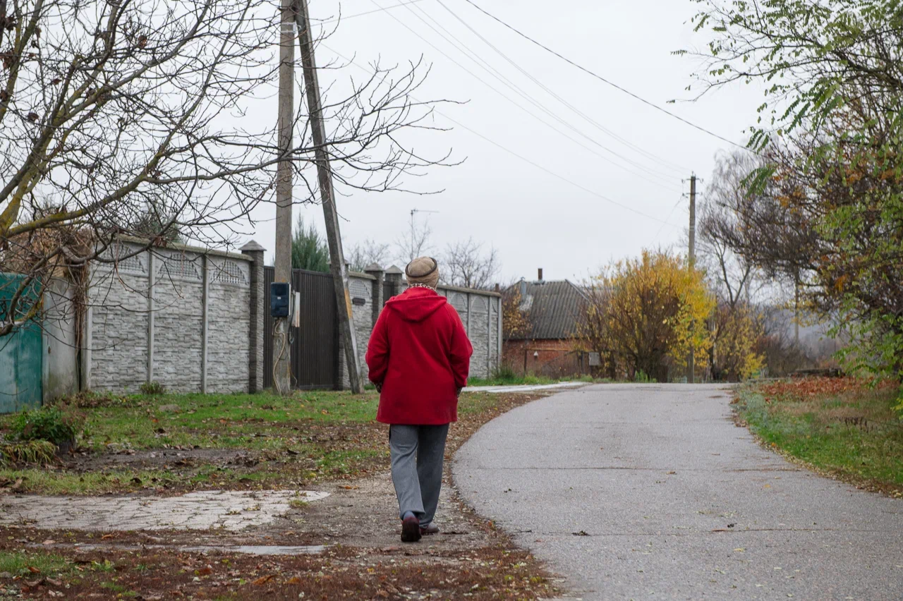 Раздаётся ещё один взрыв, который женщина по-прежнему игнорирует. Татьяна и её муж — оба пенсионеры. Женщина рассказывает, что они стараются никуда не выезжать из села, потому что на дорогах опасно. Из дома пара выходит, чтобы навестить сына, и раз в три дня чтобы сходить в местный магазин и купить продукты.