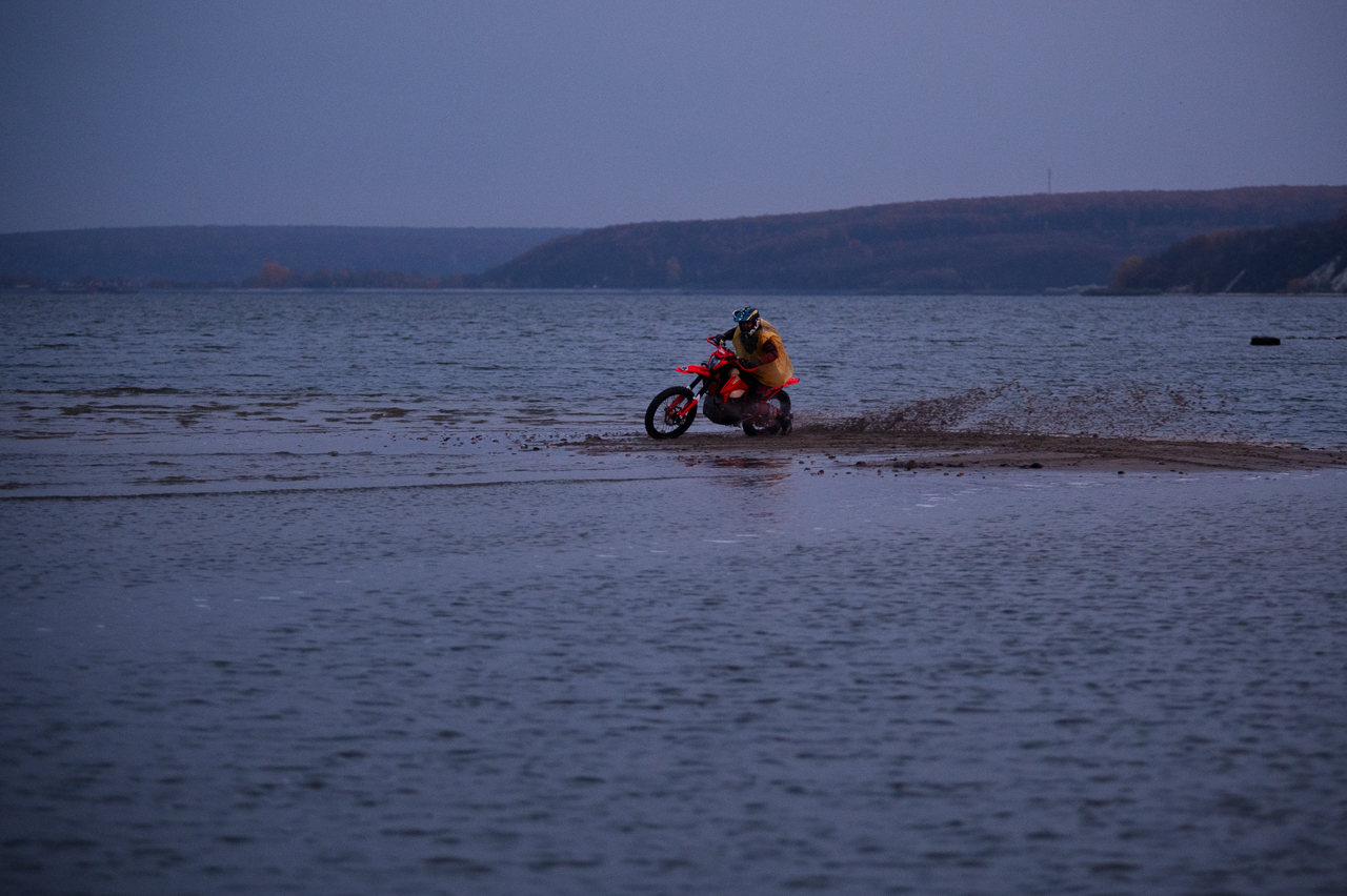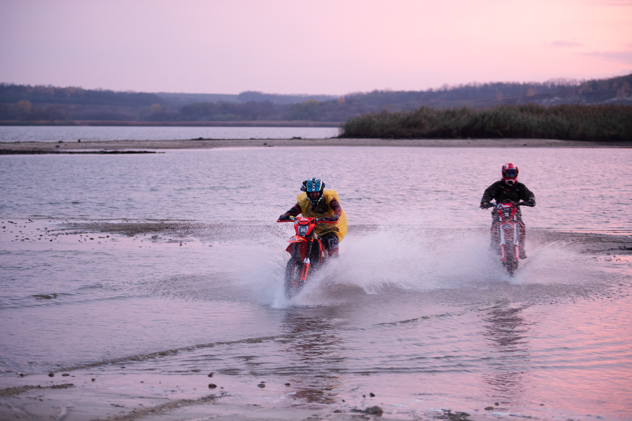 — Мы приехали из Шебекина специально, давно здесь не катались, — говорит один из мотоциклистов, остановившись возле нас. — Теперь будем часто здесь кататься, потому что вода ушла, — с неподдельной радостью делится со мной мужчина, чьё лицо остается скрыто из-за шлема.