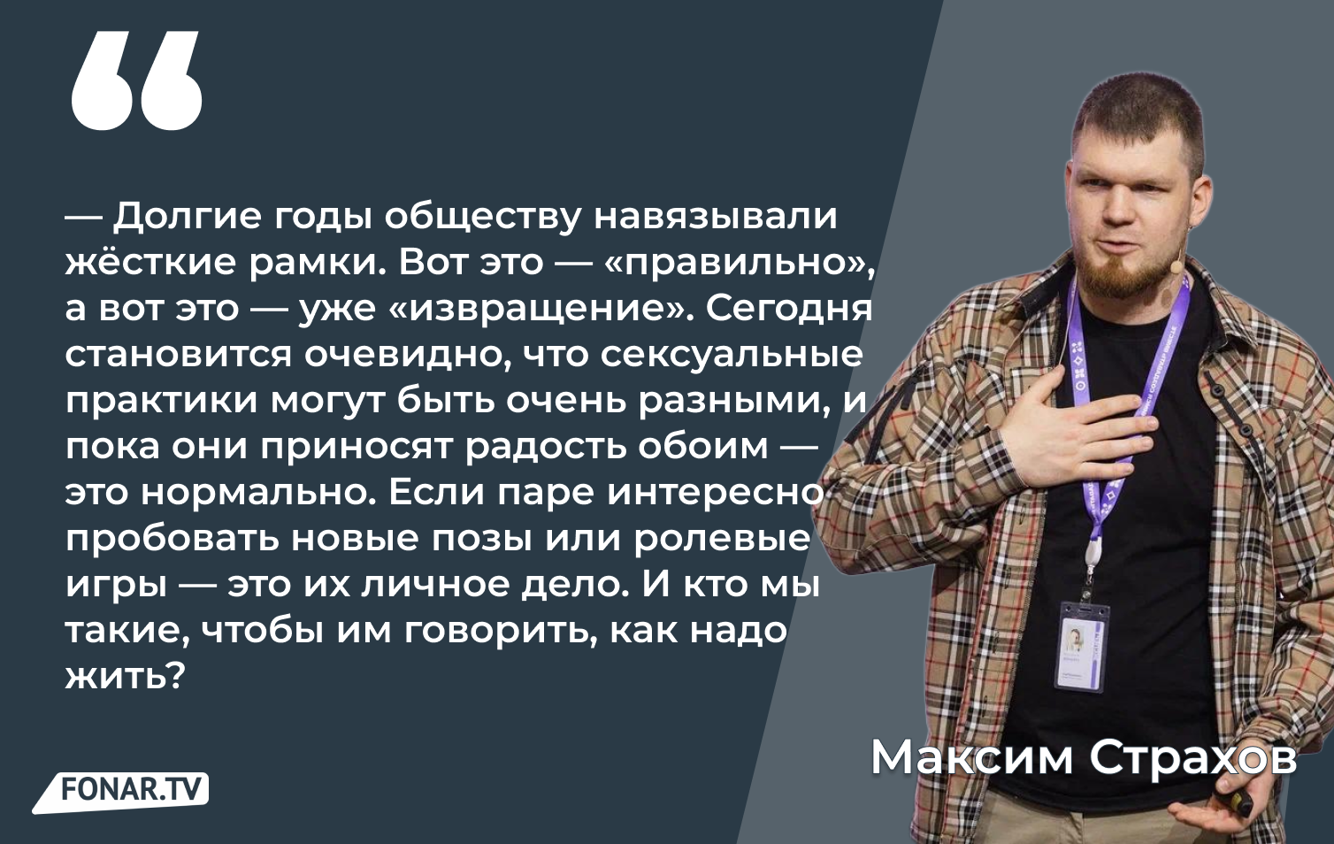 — В сексологии само понятие «норма» — очень гибкое. Если это отношения двух взрослых людей, которые добровольно вступают в близость, получают удовольствие и никому не причиняют вреда — значит, у них всё нормально.