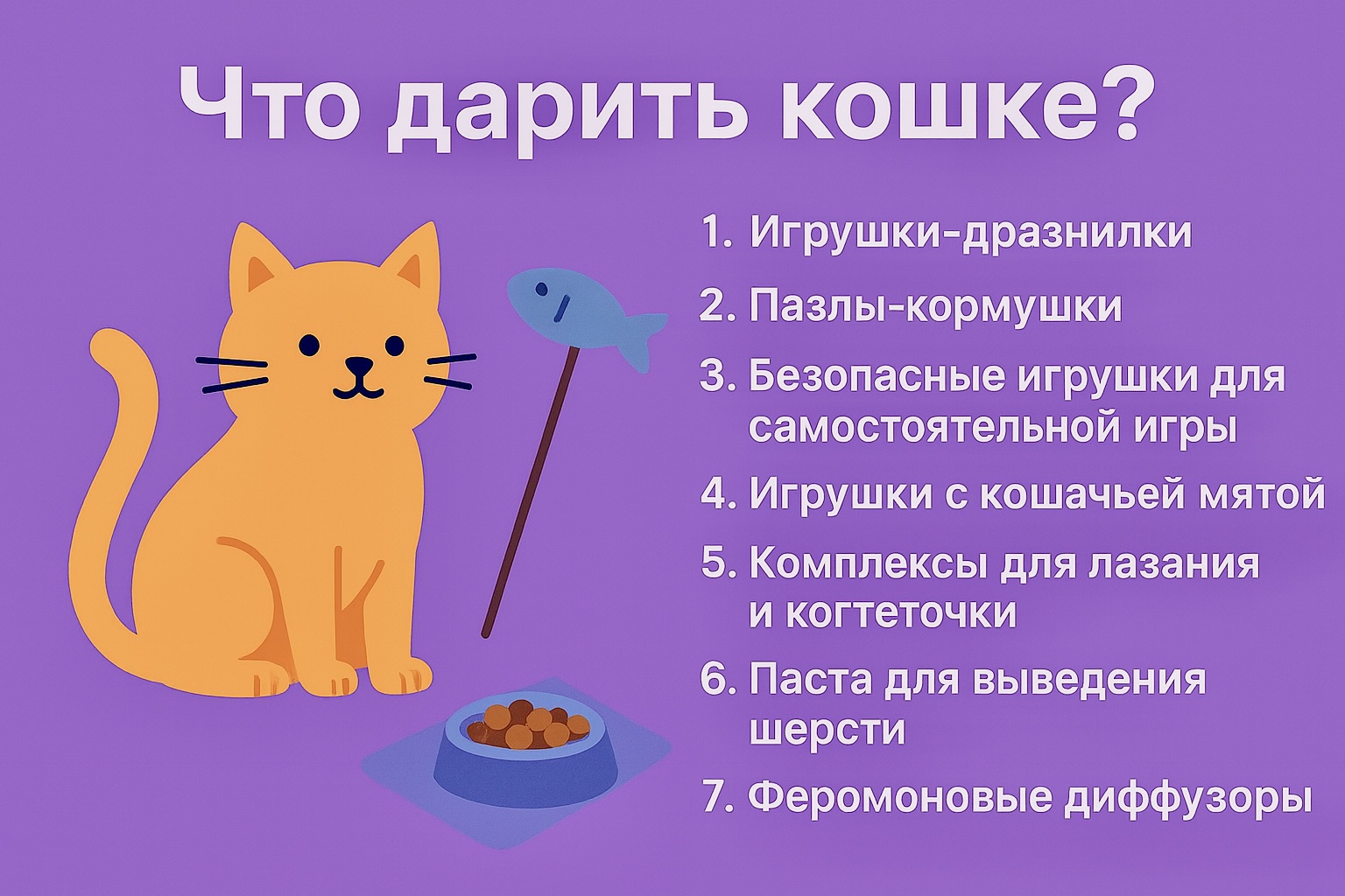 Кошки — хищники, их инстинкты — это охота, скрытность и метка территории. Подарки должны помогать им реализовывать эти потребности.
