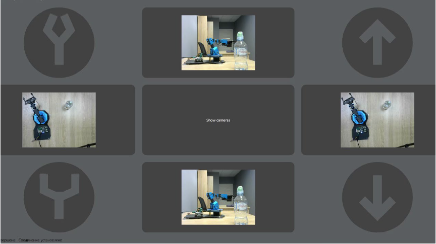 Разработка представляет собой действующий макет системы. Он состоит из бюджетного трекера для слежения за взглядом Tobii Eye Tracker 4C, настольного манипулятора на базе Arduino и двух обычных веб-камер, установленных в двух взаимно перпендикулярных плоскостях. Принцип работы системы интуитивно понятен. Человек смотрит на экран, куда транслируется изображение с этих двух камер и фокусирует взгляд на определённой точке.