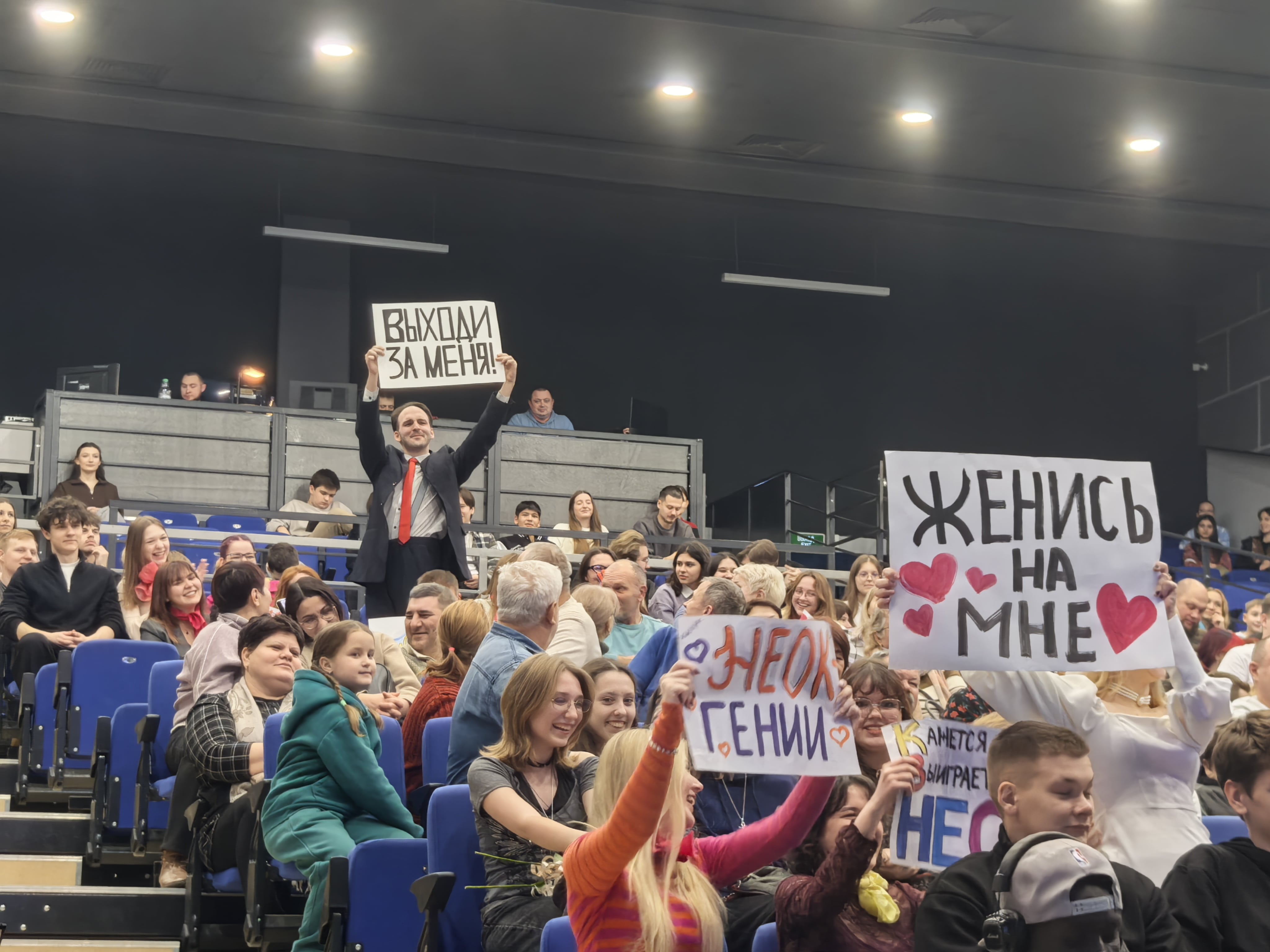 Забавные моменты начались ещё до начала игры, когда зрители сели на свои места. Во время вступительного слова болельщики кричали и поднимали плакаты и флаги своих команд. Так вышло, что на одном из рядов девушка подняла плакат с подписью «женись на мне», а мужчина сзади — «выходи за меня». Сами они сказали, что не делали это специально и даже не знакомы. Позже примерно такая же сценка разыграется на «прямой линии» Владимира Путина, но вряд ли её участники смотрели белгородский КВН.