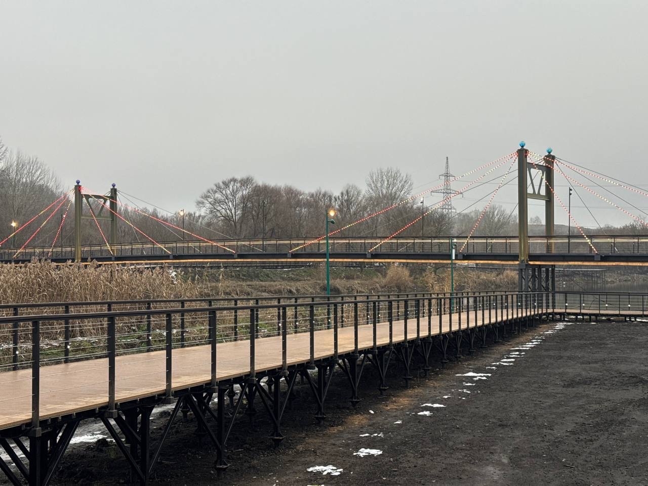 — Нужно добавить подсветку по основанию моста. Чем больше подсветки, тем привлекательнее. Это мотивация — человек идёт сзади и видит огоньки, он хочет сюда. Это будет не лишним на фоне леса, — высказался Вячеслав Гладков.