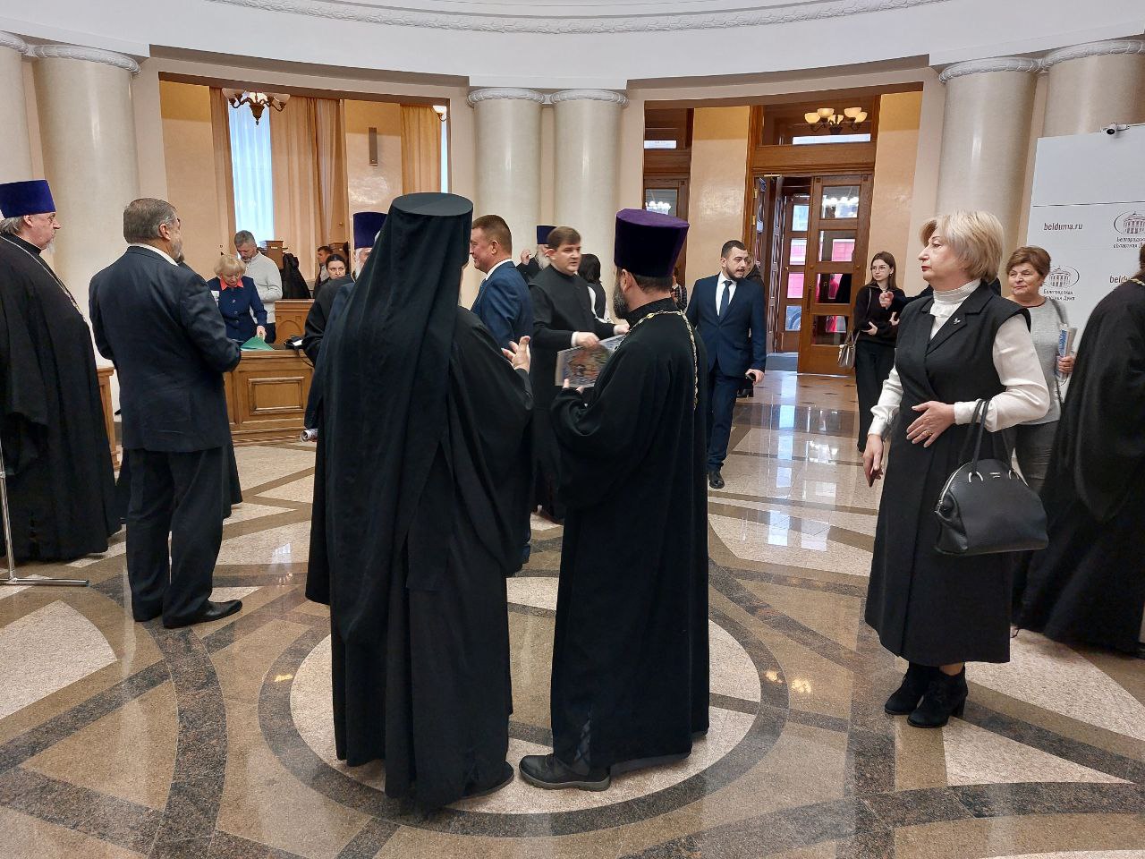 В овальном зале правительства Белгородской области собрались архиереи и представители духовенства, депутаты областной думы, руководители и преподаватели вузов и среднеспециальных учебных заведений, школ и учреждений дополнительного образования. Присутствовали губернатор Белгородской области Вячеслав Гладков, члены правительства, председатель Белгородской областной думы Юрий Клепиков.