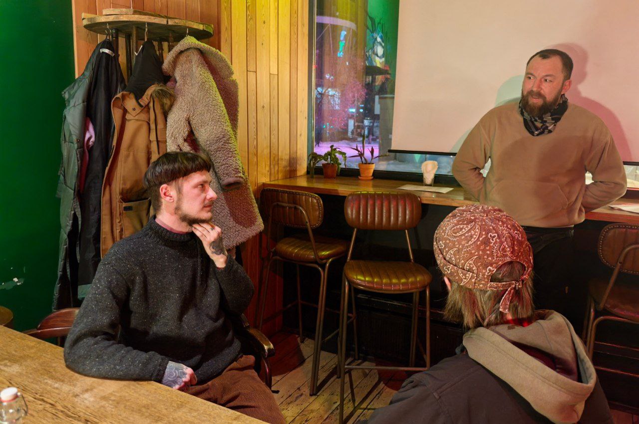 Ведущим первой барной встречи исторического триптиха «Слобожанщина» стал антиквар и экскурсовод Алексей Бондарев. Для него это новый формат: раньше он работал преимущественно на городских экскурсиях. Но эксперимент удался — в пабе собралось несколько десятков человек разного возраста: от студентов до людей постарше. Пришёл даже ребёнок. «Мне главное, чтобы вот он услышал», — пошутил Алексей, обращаясь к маме мальчика.