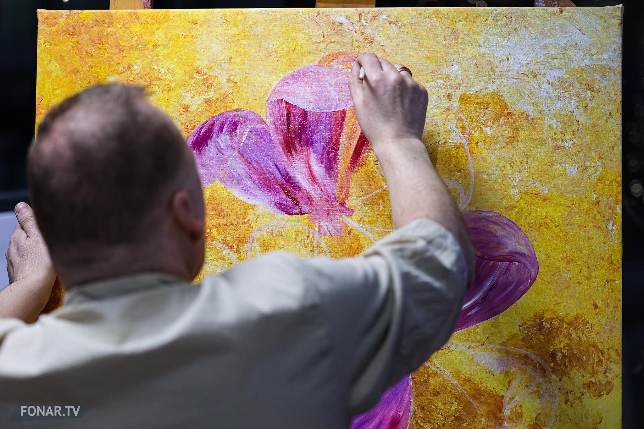 — Цветок — это универсальный объект, вещь в себе, существующая вне времени, вне географии, вне политики, культуры и религии. Он просто есть и есть. Соответственно, он понятен абсолютно всем. Вот рисуешь пейзаж с берёзками, и вроде пейзаж всем понятен, но, допустим, аборигену из Африки он непонятен. А цветок понятен, — рассказывает о своей идее художник.