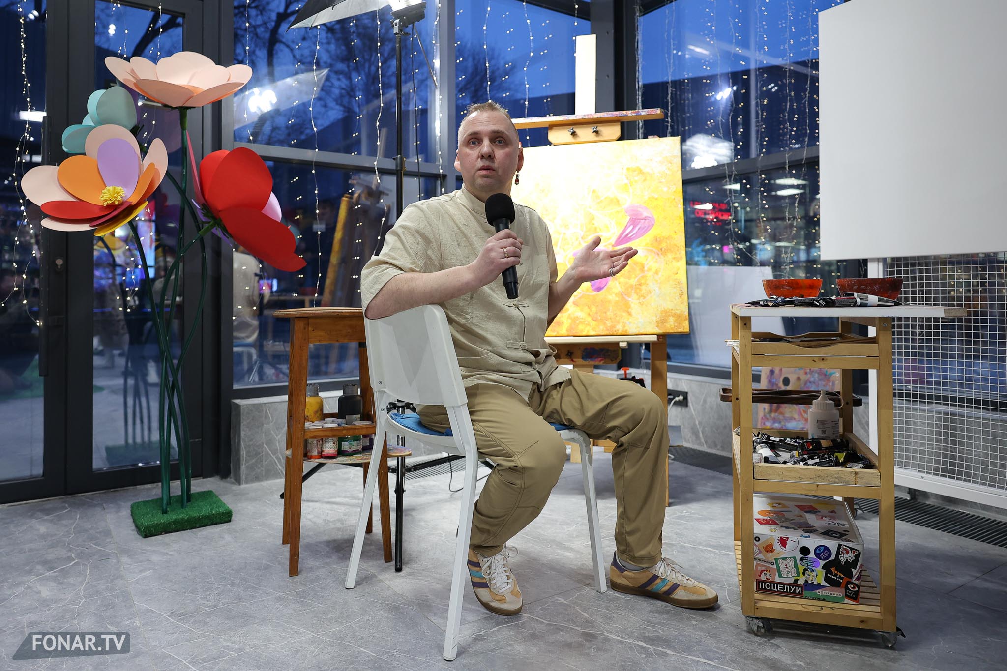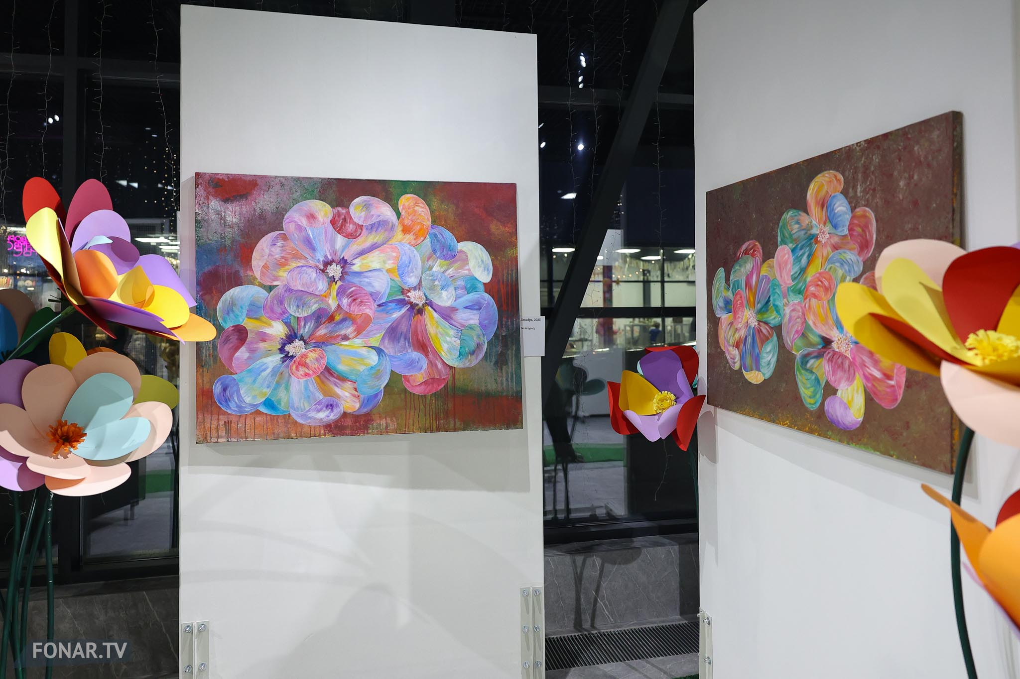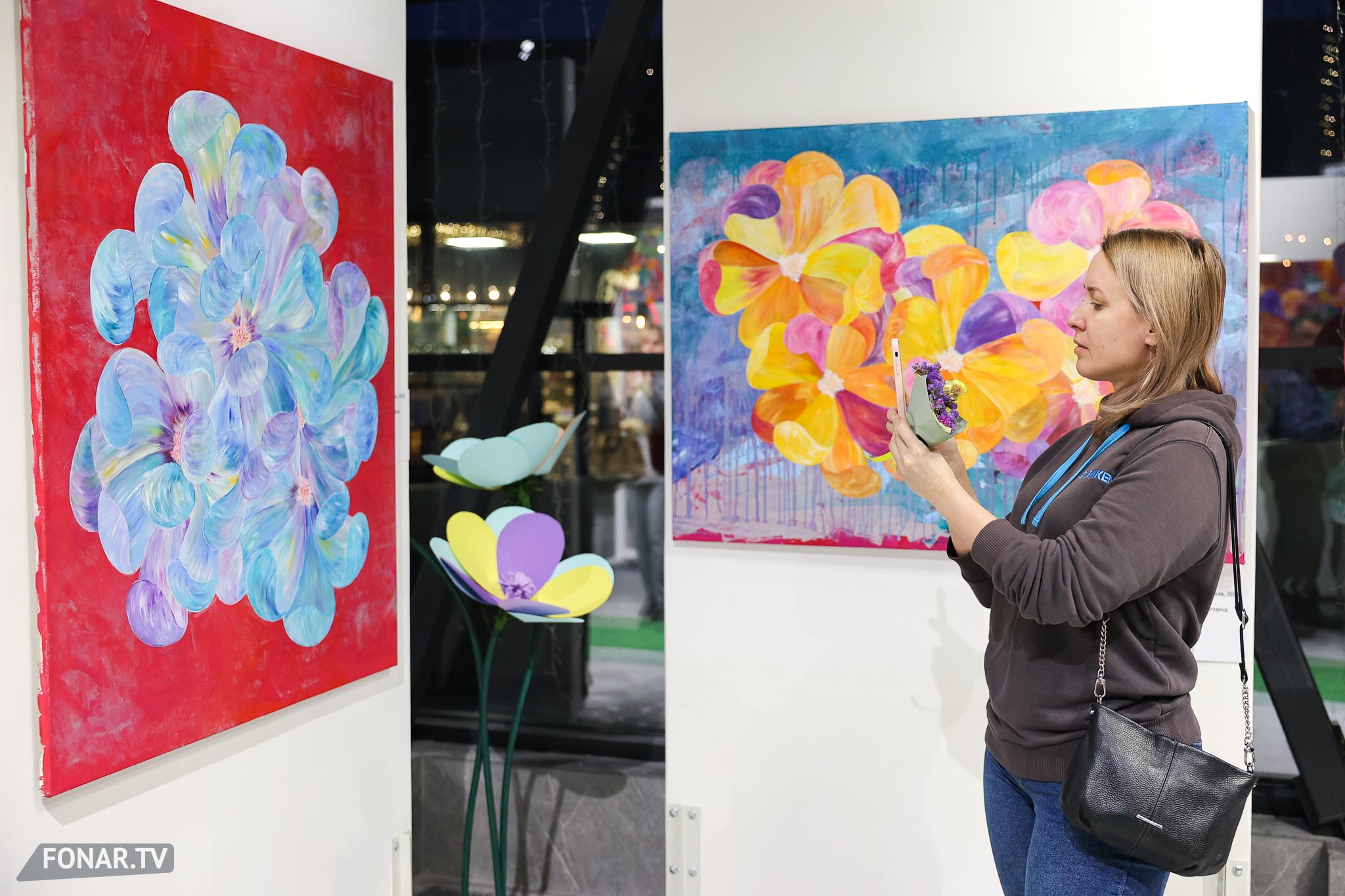 Общую концепцию выставки поддержали и ростовые фигуры цветов, которые художник сделал своими руками.