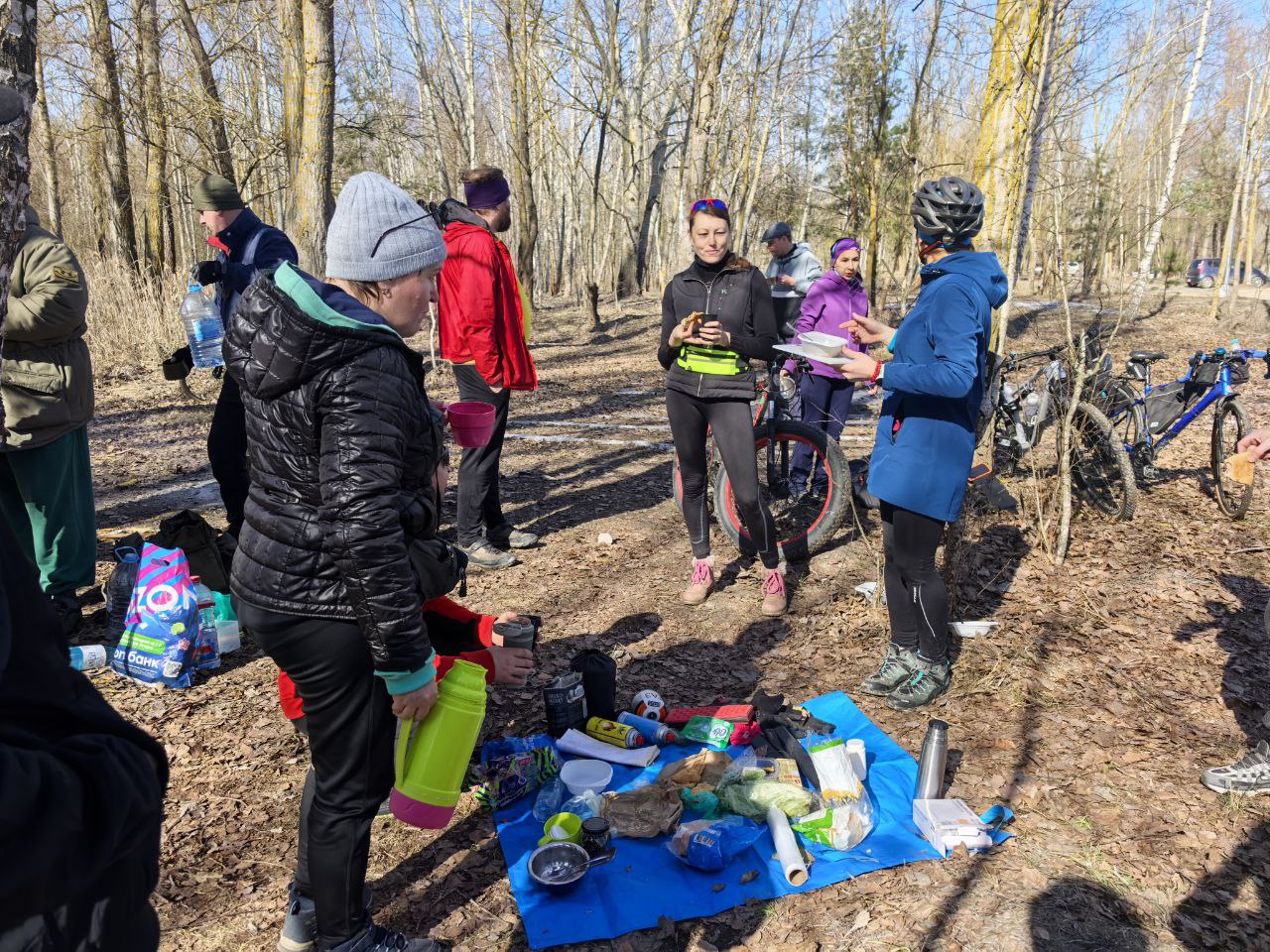 После уборки организовали походный обед. Один из участников сварил уху на костре, остальные добавили на общий стол свою запасы и термоса. Велосипедисты выбросили за собой весь мусор и были полны сил продолжить покатушки.