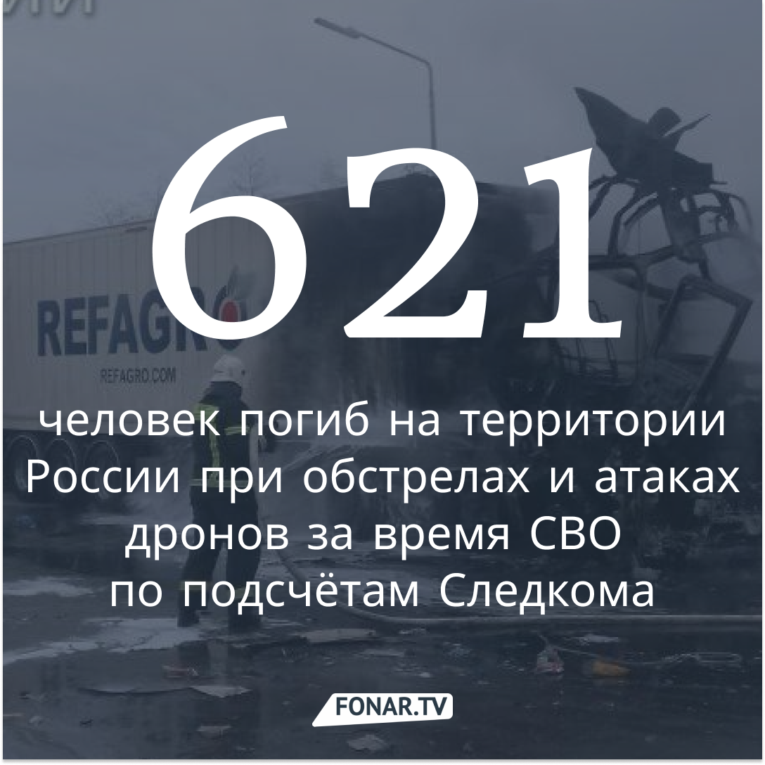 По информации руководителя Следственного комитета Российской Федерации Александра Бастрыкина, с начала СВО в России погиб 621 мирный житель, среди которых 38 детей. Напомним, что, по нашим подсчётам, 319 человек из этих погибших — жители Белгородской области. В последнее время белгородцы чаще всего гибли при атаках дронов.