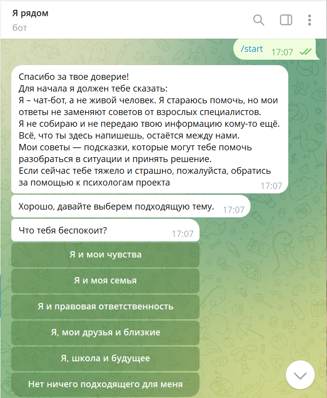 Скриншот из чат-бота «Я рядом»