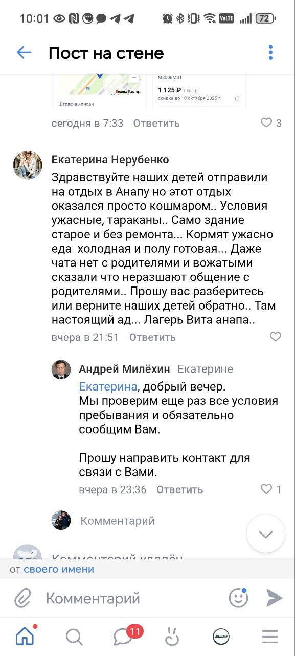 Жительница Белгородской области Екатерина Нерубенко в комментариях на странице губернатора Вячеслава Гладкова во «ВКонтакте» рассказала о тяжёлых условиях, в которых оказался её ребёнок, отправленный на отдых в лагерь «Вита» в Анапе.