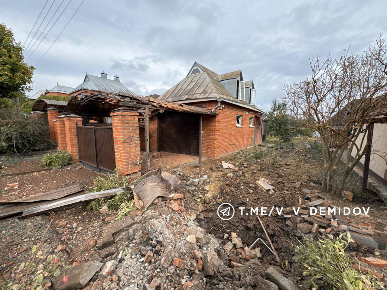 Белгород снова встретил утро воскресенья, 5 октября, под звуки взрывов. Очередная атака украинских беспилотников пришлась по домам и улицам, где живут обычные люди. В одном из частных секторов дрон сдетонировал рядом с жилым домом — осколками посекло кровлю, фасад и ворота, в гараже выбило стёкла. Ещё два дома оказались повреждены, пострадал и припаркованный неподалёку легковой автомобиль.