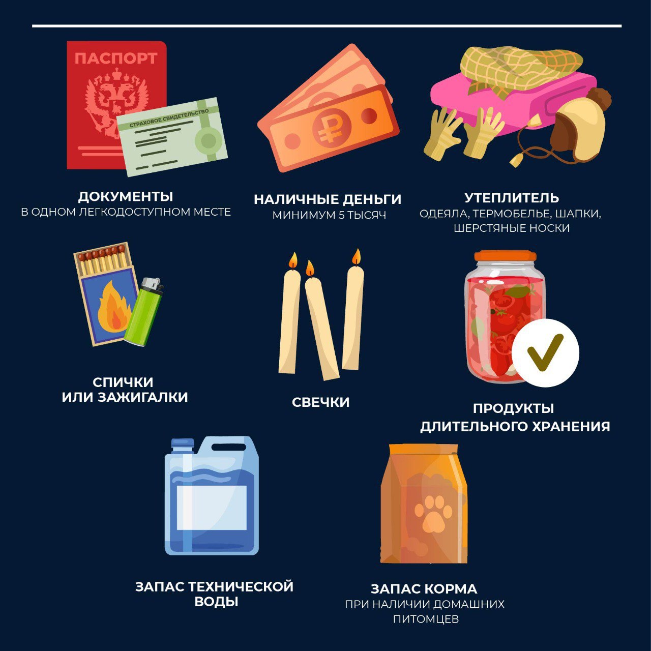 Оперштаб Белгородской области опубликовал карточки с советами о том, что нужно подготовить на случай чрезвычайной ситуации, и в частности длительного отключения электричества. Эта проблема стала особенно ощутима после последних атак на энергообъекты.