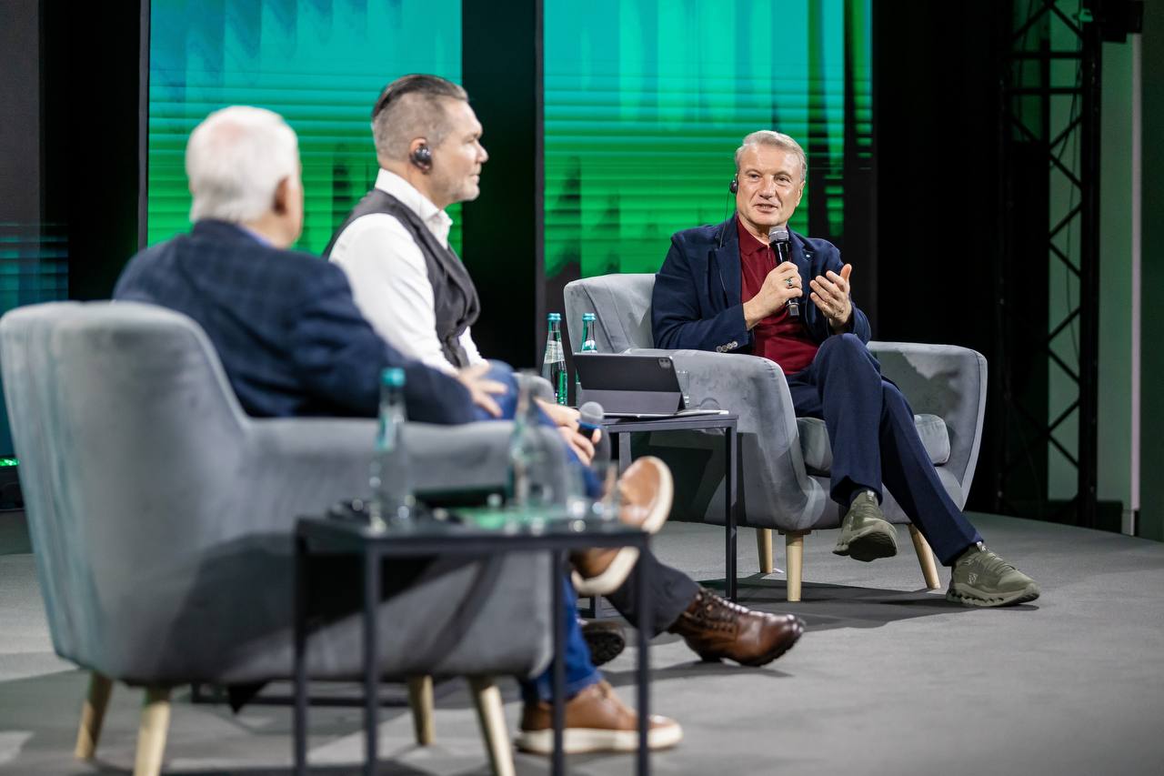 Открыл дискуссию президент, председатель правления Сбербанка Герман Греф вместе с нейрофизиологом Александром Капланом и экспертом по обучению Ником Шеклтон-Джонсом. Они обсудили фундаментальные изменения в человеческом мышлении в эпоху ИИ. Герман Греф отметил, что искусственный интеллект помогает человеку осваивать новые области знаний быстрее и точнее. По его словам, сейчас важно не ограничивать, а разумно интегрировать ИИ в учёбу, чтобы подготовить человека мыслящего — Homo cogitans — к жизни в новой реальности.