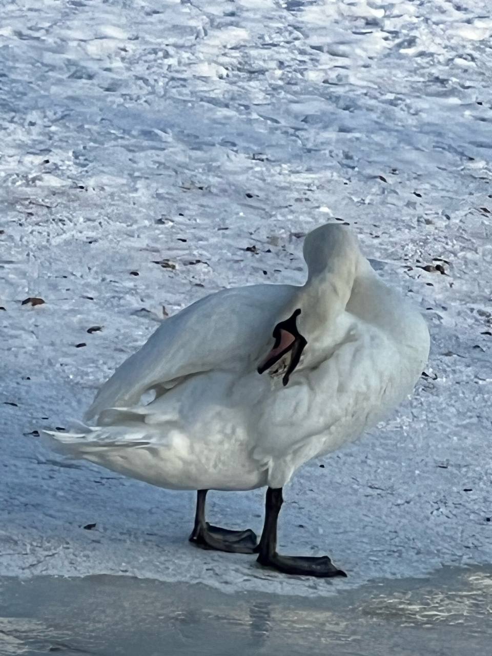 Для лебедя специалисты регионального Союза охраны птиц подготовили укрытие в камышах и организовали подкормку, однако сильные крещенские морозы оказались для него смертельными. За несколько дней до гибели горожане заметили, что у лебедя обледенели крылья.