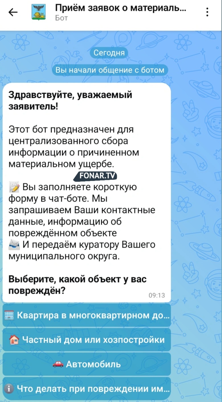 В мессенджере «Мах» запустили чат-бот, через который белгородцы могут подать заявление на возмещение ущерба, полученного из-за обстрелов ВСУ. Об этом сообщил губернатор Белгородской области Вячеслав Гладков в утреннем видеообращении 1 февраля.