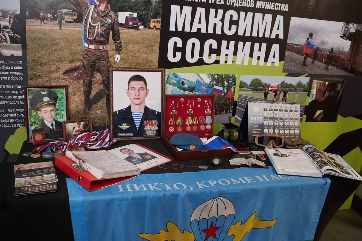 Максим Соснин родился в посёлке Октябрьском Белгородского района, с детства увлекался военным делом и возглавлял команду ВПК «Сокол». Он служил по контракту в спецназе ВДВ, участвовал в СВО и погиб в январе 2024 года при выполнении боевой задачи. За мужество и отвагу его трижды наградили орденом Мужества, дважды при жизни и один раз посмертно.