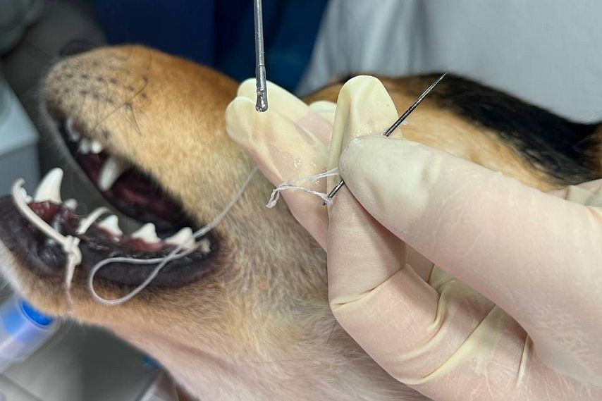 Специалисты ввели собаке эндотрахеальную трубку и погрузили в наркоз. Через эндоскоп они увидели, что игла уже вошла в слизистую пищевода. Чтобы извлечь её без разрывов, потребовалось применить особую тактику: сначала аккуратно протолкнуть иглу в желудок, и только потом удалить.